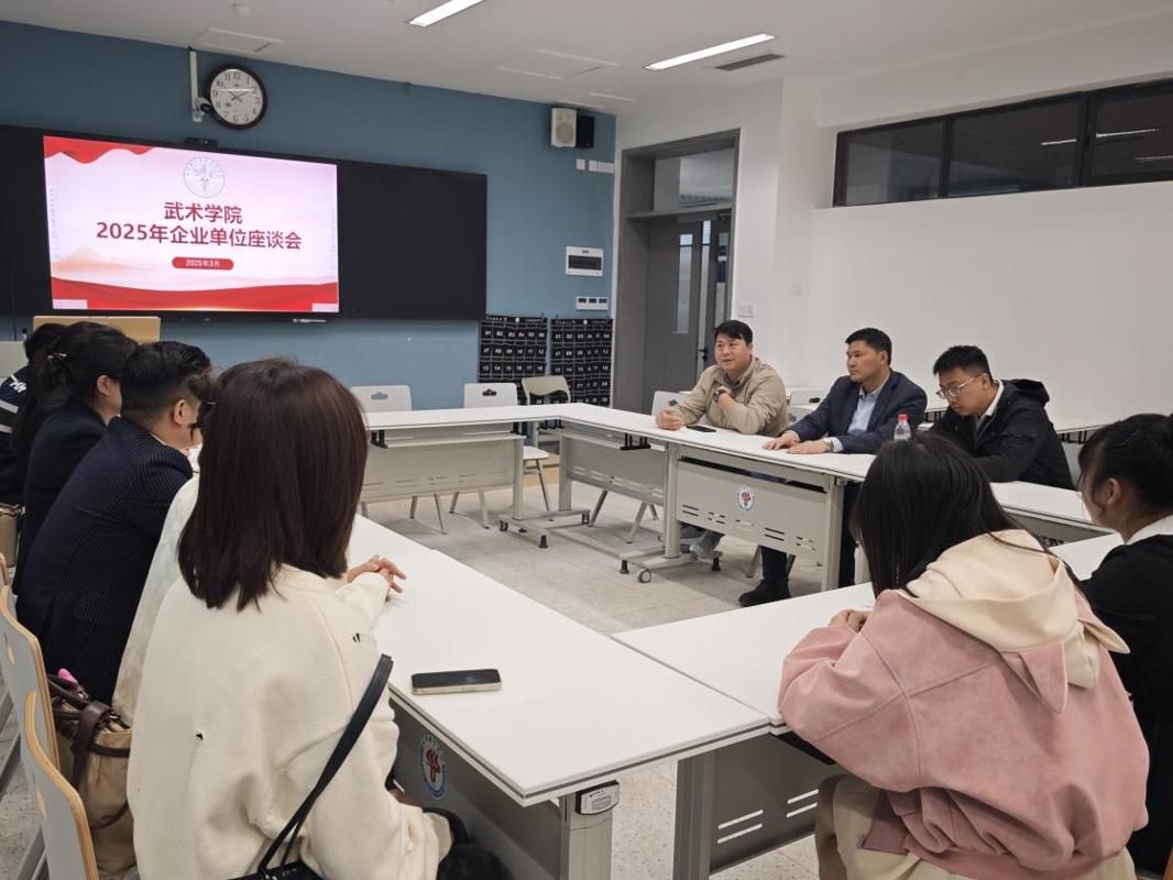 3月26日,武术学院在行健楼B304成功举办企业单位座谈会,旨在深化校企合作,精准对接人才供需,推动毕业生高质量就业。多家体育行业企业单位代表、学院领导及学生管理负责人共聚一堂,共商人才培养与就业合作大计。