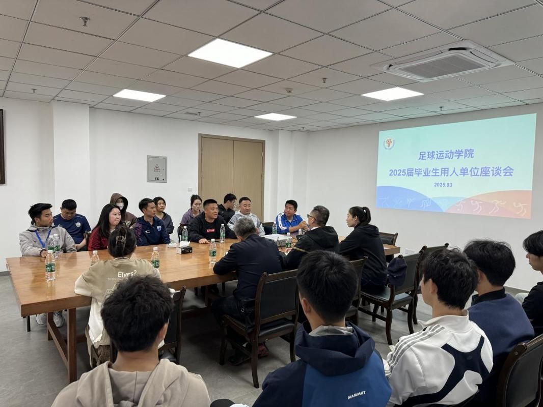 为深化校企合作,促进毕业生高质量就业,足球运动学院于3月26日开展用人单位座谈会。学院党委书记何培林,副院长李增民,2025届毕业生及六家用人单位参会,会议由学管办主任乔紫微主持。
