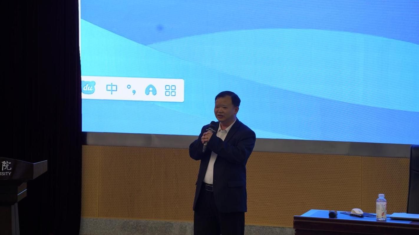 首先由四川省电子商务发展促进会副会长兼人才服务中心主任、成都人力资源研究会执行会长阴红讲话。他以与体育学院的三缘引入,激发学生兴趣,直接点出新闻的亮点就是社会的痛点,教导同学们做好职业新闻人的操守。之后以“川人出海”为比方,向同学们陈述电商未来发展方向与目标,其中包括与亚马逊合作打造人才基地,打造人才服务中心。成立一站式短剧联盟等形式,并提出人力资源进五区,分别是进社区、进校区、进园区、进山区和进军区。其中特别阐释了,为何进山区?阴红讲到山区人才资源稀缺、老年人口多、农特产品缺乏宣传的现状,并呼吁我们在未来用自己的专业赋能产业发展,将自己发展成为山区进步的内生动力。