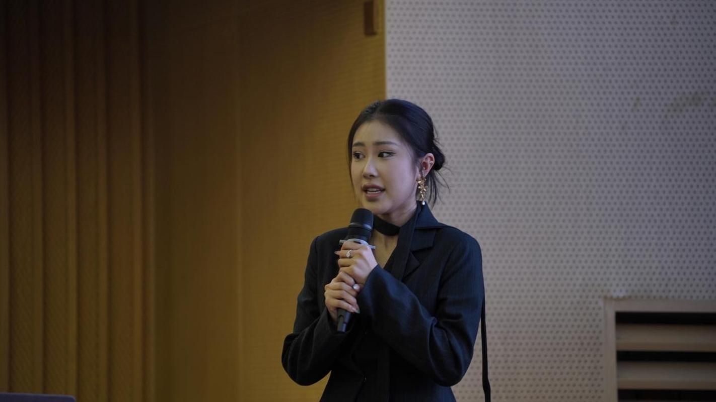 随后,四川省电子商务发展促进会融媒体中心主任杨秀薇以“新媒体营销赋能品牌增长案例及就业市场需求”为主题展开讲解。她向学生们介绍了当前新媒体发展的六大业务形态及岗位需求,涵盖新媒体整合营销、账号代运营、视频内容产出、品牌短剧定制、本地生活服务和直播服务,并通过霸王茶姬“以东方茶会世界友”、文旅短片“达古冰川”等案例,让大家更深入了解业务内容。在介绍完新媒体六大业务发展趋势后,杨秀薇为学生们分析了未来发展面临的机遇与挑战。她建议,在行业人才缺口大的当下,学生要将网感强、敢于创新作为自身优势,掌握内容创造力、数据分析力、跨界协作力,为新媒体发展增添活力。