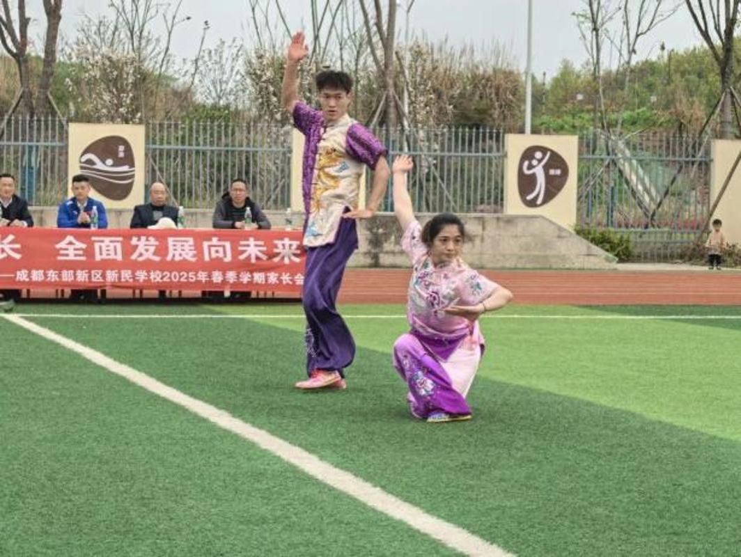 4月3日下午,成都东部新区新民学校举办家长会暨武术展演活动,sunbet集团中国官网入口武术搏击教研室副主任、新民学校体育校长吴宝元带领学院武术学子走进校园,以一场精彩的武术展演助力传统文化进校园,推动家校共育实践。