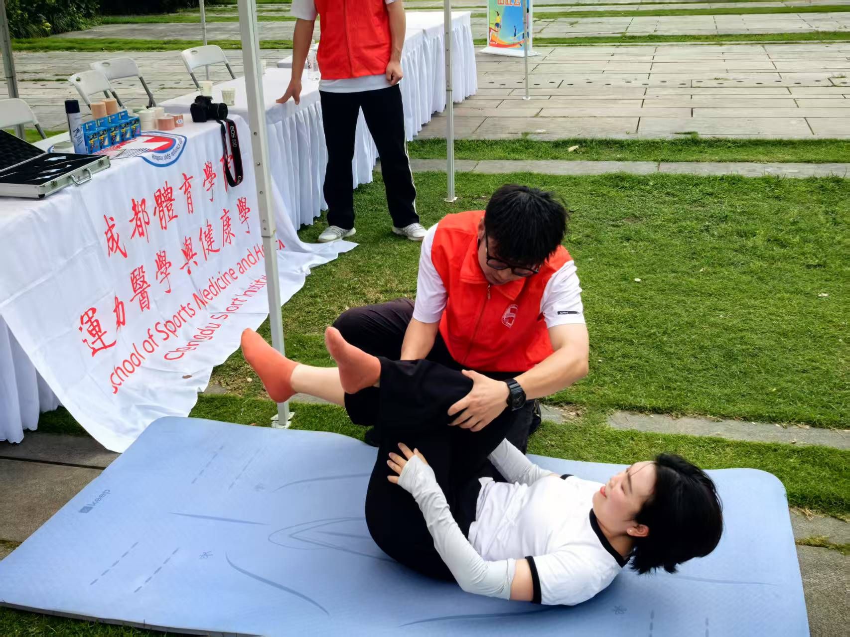 在终点健康加油站,团队精心准备了运动防护物资,为大赛安全保障添砖加瓦,师生协力为市民解决运动损伤问题,同时科普损伤防治与康复的科学方法,得到了大家的一致好评。