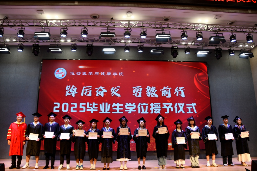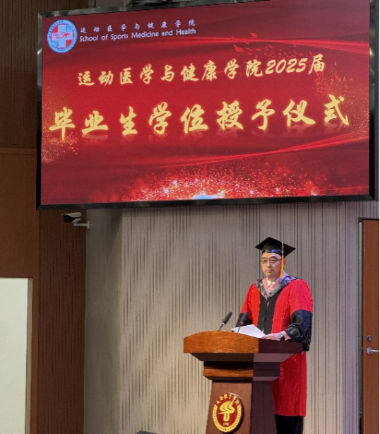 2025年6月18日,运动医学与健康学院2025届毕业典礼暨学位授予仪式在图书馆学术厅隆重举行。运动医学与健康学院领导班子以及研究生导师、教师代表齐聚一堂,共同见证366位博士、硕士研究生和本科生的重要时刻。此次授位仪式由学院党委副书记刘余主持。