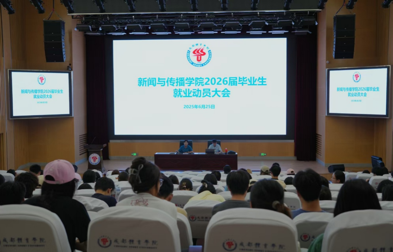 6月25日晚19时,新闻与传播学院2026届毕业生就业动员大会在行健楼二楼同传室召开。学院党委副书记冯瑞、学生管理办公室主任李挺之和2026届全体毕业生参加了会议。