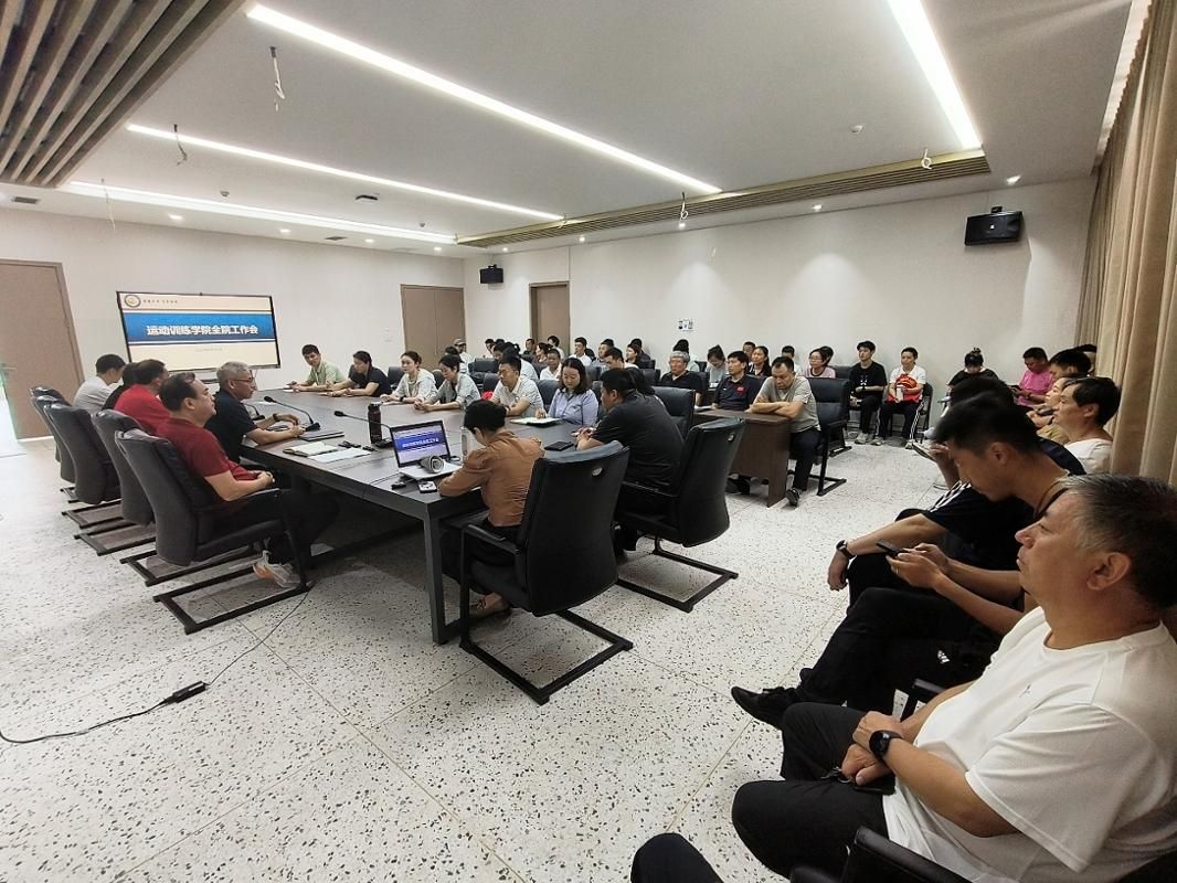 6月27日中午,运动训练学院在网球馆2楼会议室召开全院工作会,全体教职工参加。会议由杨成波院长主持。