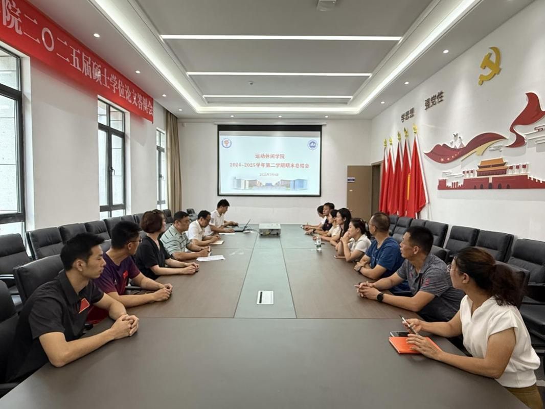 2025年7月4日,运动休闲学院在运动休闲馆3-24会议室召开2024-2025学年第二学期工作总结会,学院全体教师参加。会议由院长曾洪林主持。此次会议旨在回顾上半年的工作成果,总结经验,并为新学期制定发展计划。