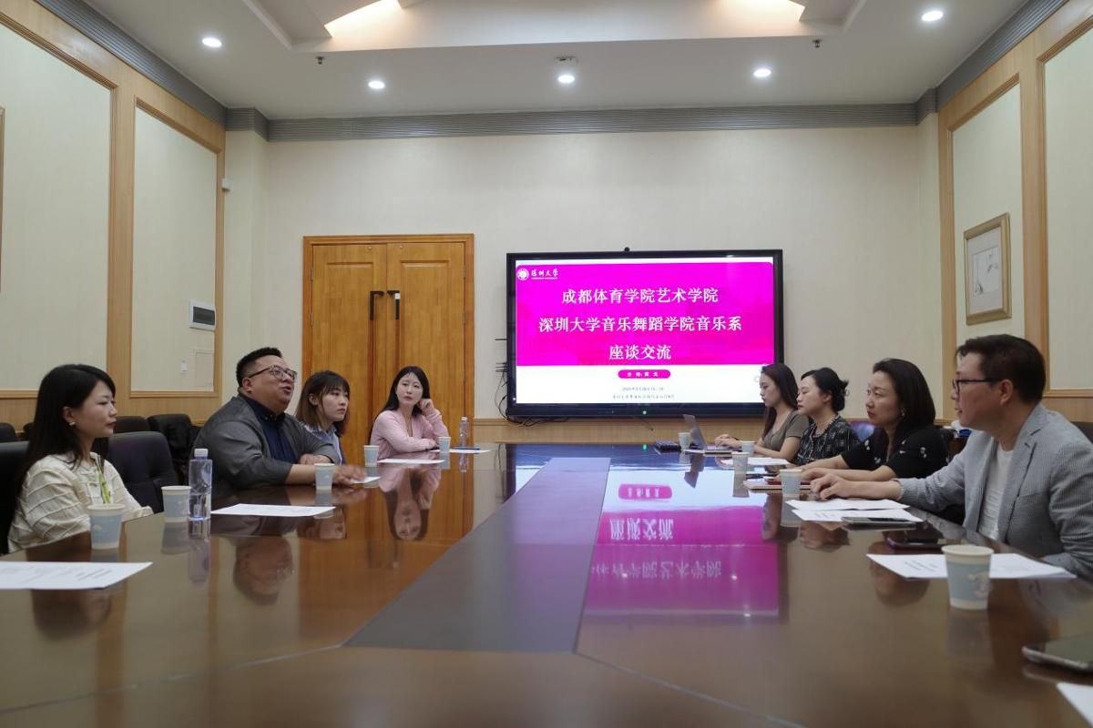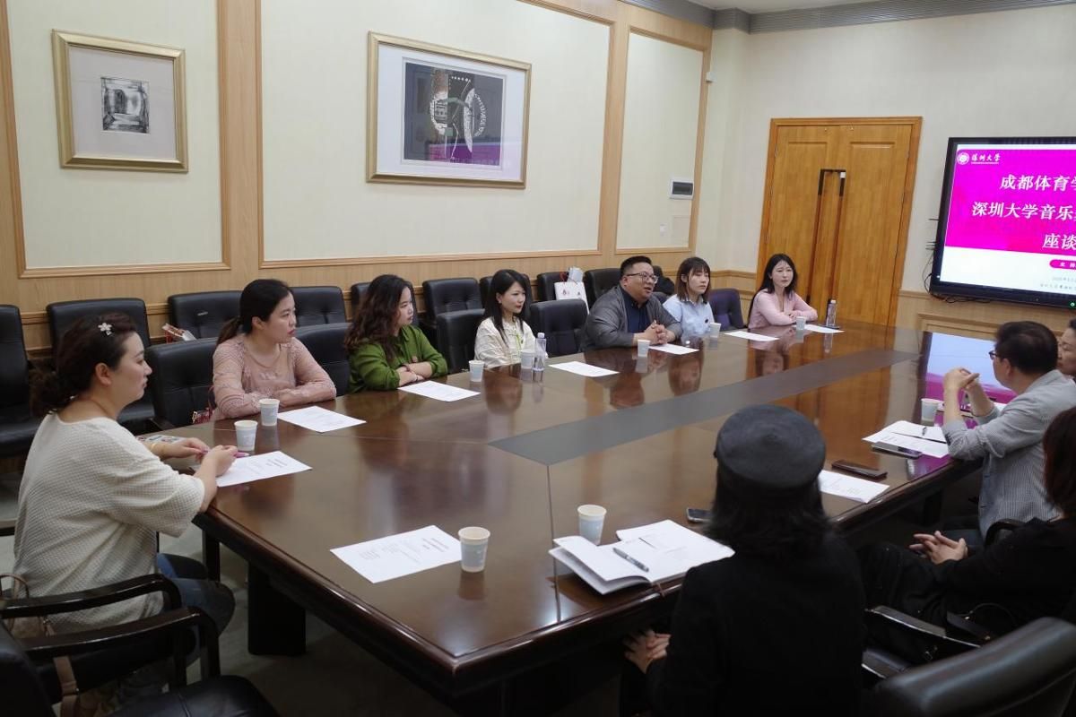 28日,两校教师在深圳大学粤海校区国际会议中心举行座谈会。深圳大学声乐教研室主任黄戈、钢琴教研室主任郝鹤分别介绍了该校音乐专业三十余年的办学历史、教学改革成果及“以实践促创新”的人才培养模式。我院声乐教研室副主任邱文杰博士详细阐述了sunbet集团音乐表演专业的办学特色、课程体系及当前改革重点,双方就新文科交叉课程建设、舞台实践体系优化等内容展开热烈讨论。