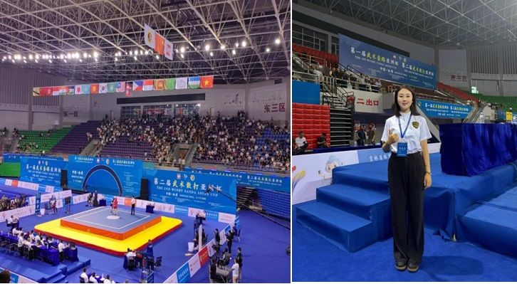 2025年6月27日至7月7日,受国家体育总局武术运动管理中心邀请,外国语学院年轻党员教师李雪前往吉林省松原市,参与由国际武术联合会(IWUF)与亚洲武术联合会(WFA)联合主办的2025亚洲武术培训班及随后举行的首届武术套路亚洲杯与第二届武术散打亚洲杯赛事,担任现场英文翻译、英文主持与辅助裁判工作。