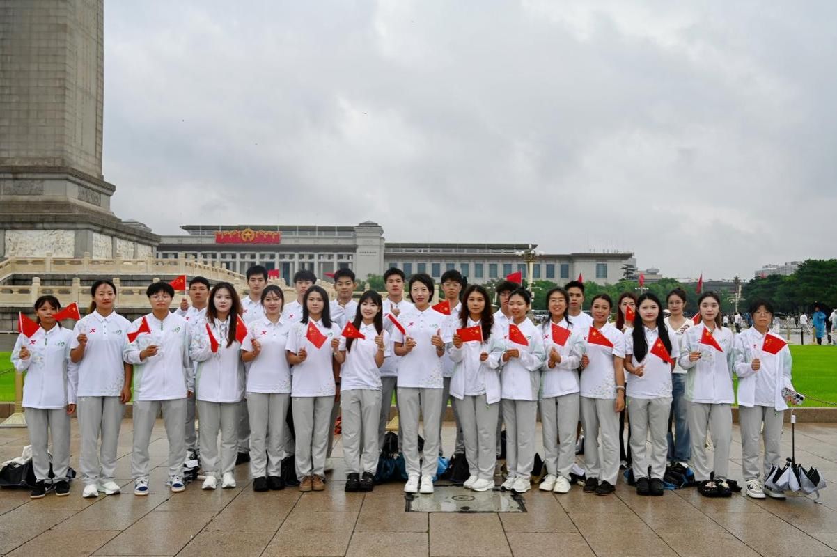 8月27日清晨,北京暴雨如注,却未能阻挡成体青年奔赴天安门广场的步伐。尽管衣衫尽湿、寒风侵骨,同学们仍坚持排队两小时,只为亲身感受天安门城楼的巍峨庄严、人民大会堂的宏伟肃穆和人民英雄纪念碑的崇高敬意。“站在这里,才懂得什么是祖国。”苏承志同学注视着雨幕中的城楼动情地说道。风雨中紧握的拳头与挺直的脊梁,无声地诠释着“强国有我”的青春誓言。