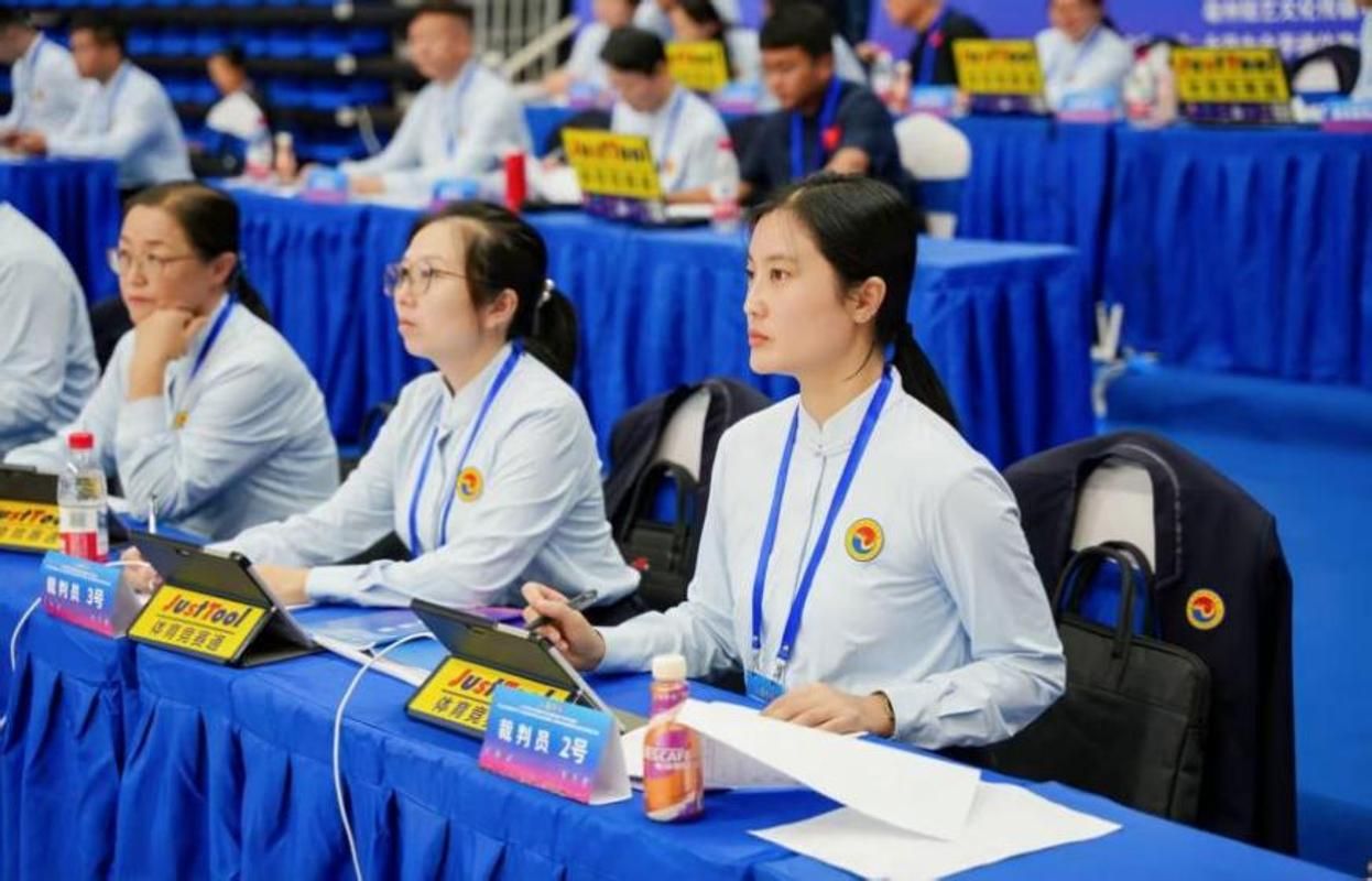 sunbet集团武术学院涂平老师受邀担任大赛评分裁判。执裁过程中,她始终恪守“严肃、认真、公正、准确”的原则,以高度的专业水准和严谨的工作态度圆满完成裁判任务,充分展现了sunbet集团教师优秀的专业素养。此外,涂平老师积极与国内外裁判交流,分享执裁经验及对健身气功·五禽戏技术体系的理解,不仅为大赛的公平、公正提供了有力保障,也进一步提升了sunbet集团武术学院在健身气功领域的影响力。
