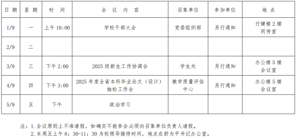 关于召开学校干部大会的通知
