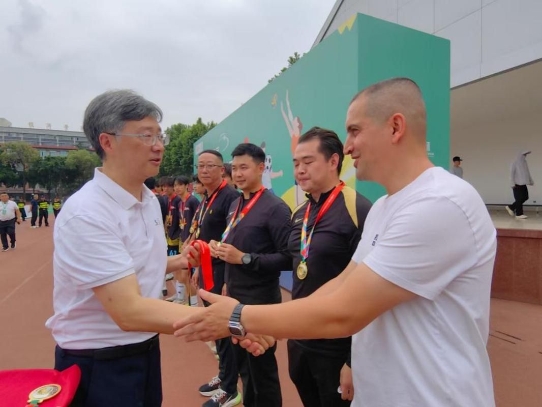 学校党委常委、副校长李林到四川大学客场为队员们加油助威,并在赛后的颁奖环节,亲自为队员和教练团队颁发象征荣誉的冠军奖牌。
