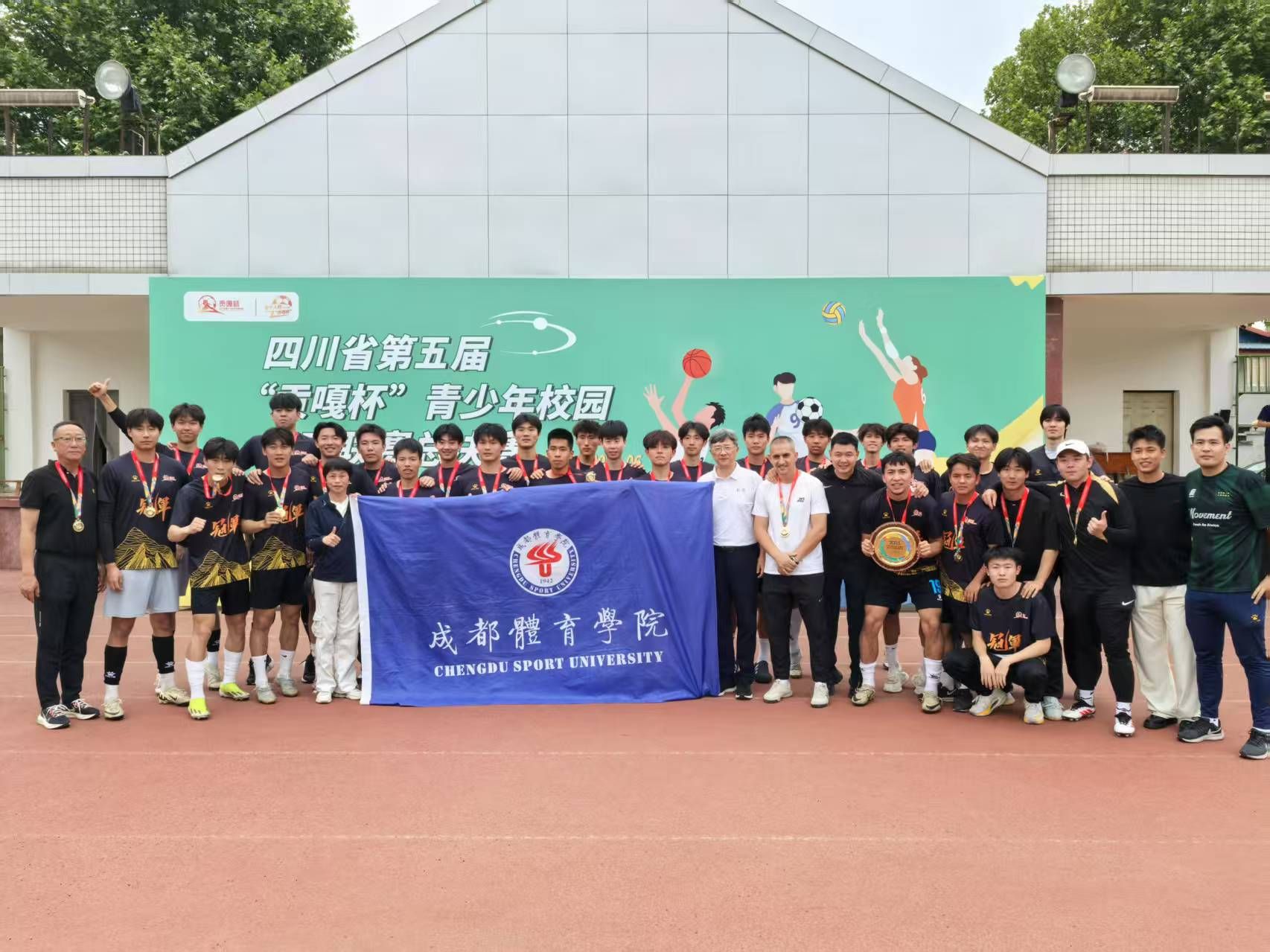 第五届贡嘎杯青少年校园体育联赛为跨年度赛事,2024年11月,sunbet集团中国官网入口男足代表队先是以全胜战绩,在预赛中脱颖而出,跻身总决赛。2025年4月,男足代表队再次以全胜的战绩在总决赛小组赛中拔得头筹,以小组第一的身份直接进入四强,并在半决赛的主客场比赛中两度击败成都大学,获得决赛资格。