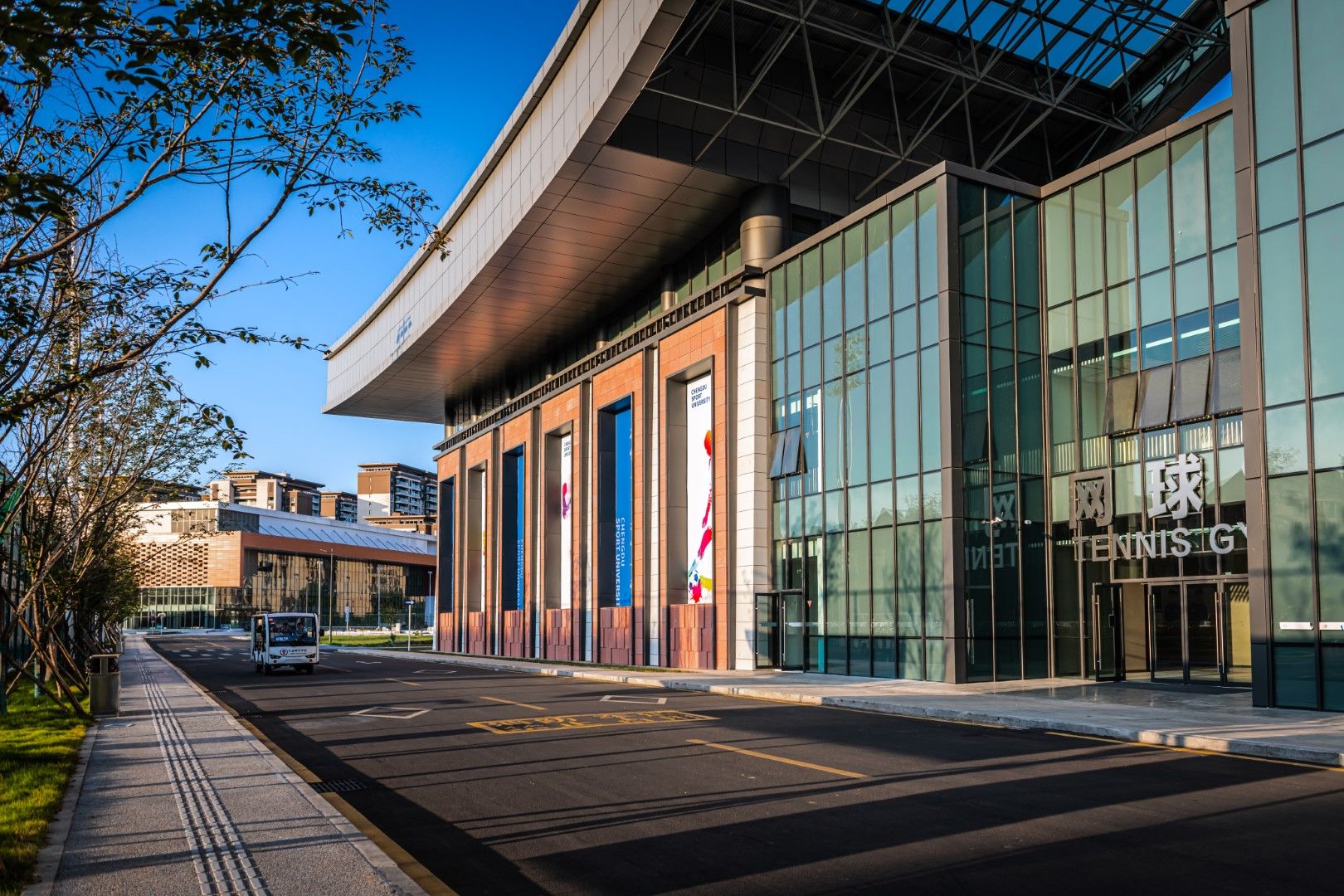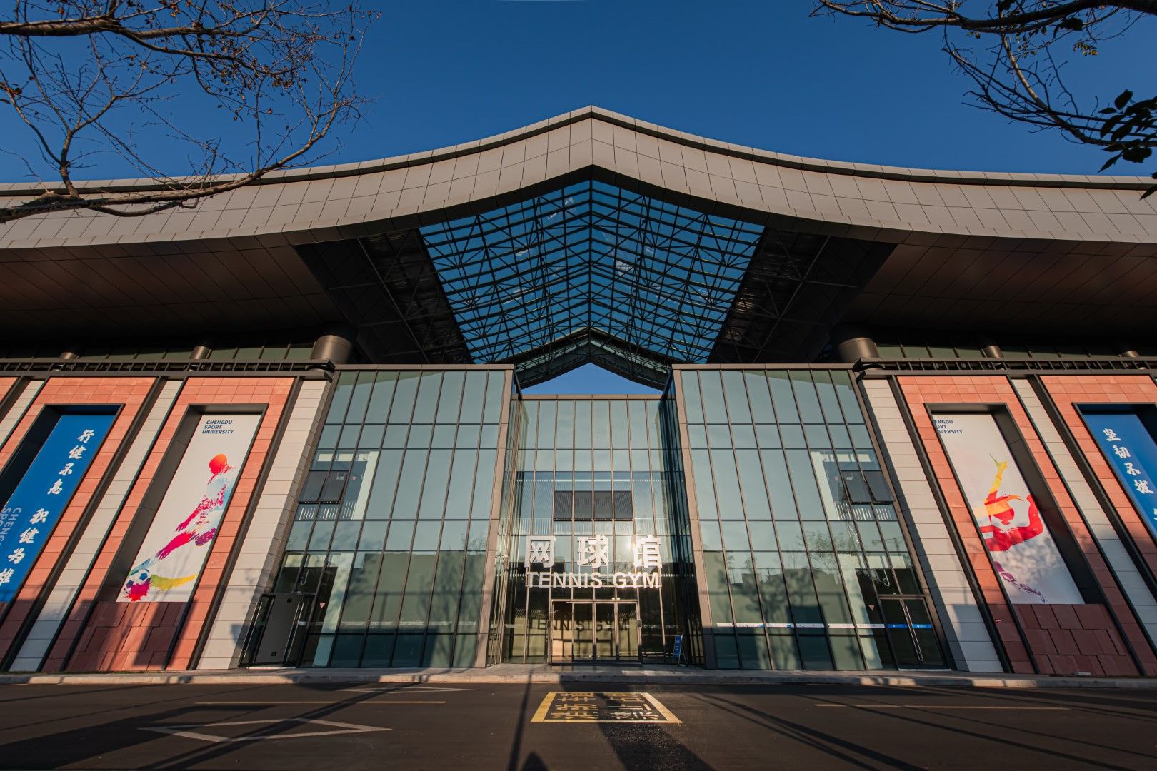 场馆介绍:建筑面积为10813.44平方米,地上两层,建筑高度22.21米,框架结构。设99.44平方米会议室1个,室内网球场8片,配套贵宾休息室,可作为大型赛事训练热身场地。教学训练之余,可作为全民健身网球或其他室内活动举办场地。