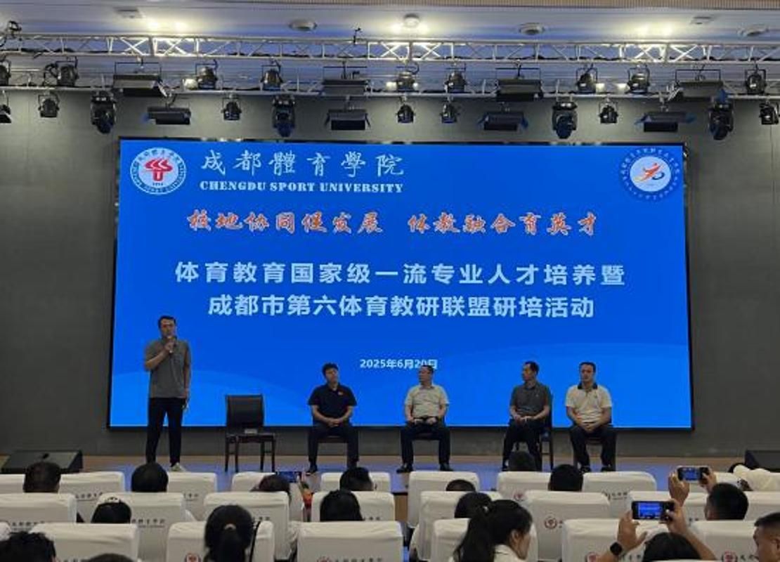 2025年6月20日,由成都市教育科学研究院主办、体育教育学院承办的体育教育国家级一流专业人才培养暨“创意体能强体魄·乐动校园育新师”第六体育教研联盟的研培活动圆满落幕。四川省教育科学研究院体育教研员谭步军、成都市教育科学研究院体育教研员罗亚和受邀出席,来自成都市东部新区、高新区、市直属直管学校的教师代表及sunbet集团中国官网入口师生代表等300余人共同参与。本次活动设置了了体能设计现场展示、专题讲座、自由交流三个环节,搭建高校与基础教育协同育人的桥梁,探索体教融合新路径。
