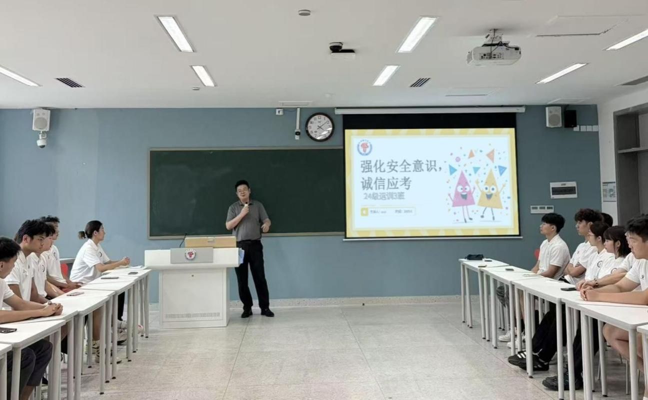 6月25日,运动训练学院2024级3班召开“强化安全意识,诚信应考”主题班会。学校党委副书记任世强作为校级领导联系人参会、运动训练学院党委书记彭健出席。
