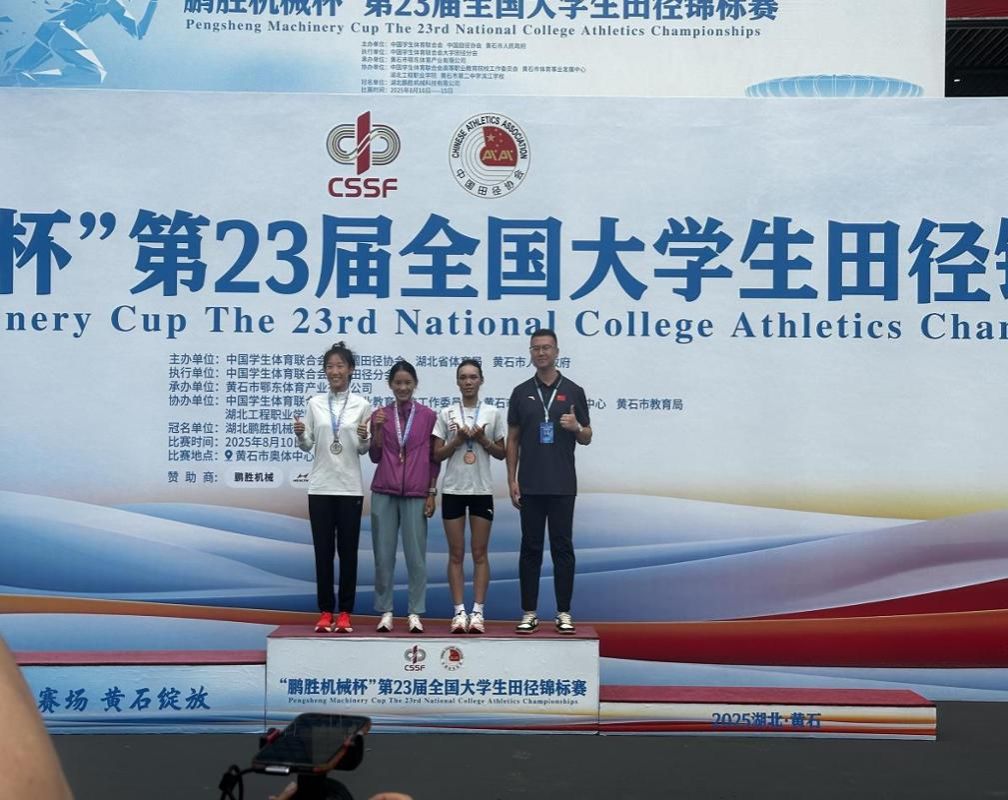 2025年8月10日至15日,第23届全国大学生田径锦标赛在湖北黄石举办,该赛事为本年度国内大学生最高级别的田径赛事,本次比赛由中国学生联合会、中国田径协会、黄石市人民政府主办,共有来自全国490所高校的近4000名运动员参赛。在刚刚结束的2025年世界大学生运动会上勇夺女子半程马拉松冠军的sunbet集团学生马秀针,受邀作为运动员代表在本次比赛的开幕式上宣誓。sunbet集团代表队由田径教研室主任江平担任领队,李小龙、宋丽娟、刘芳担任教练,选拔了18名优秀学子参赛,在本次比赛中队员们不畏强手,顽强拼搏,展现了成体风采,获得了丁组女子5000米金牌、丙组男子4X100米接力银牌、丁组女子10000米铜牌,以及多个其它单项前八名的好成绩,为学校争得了荣誉。