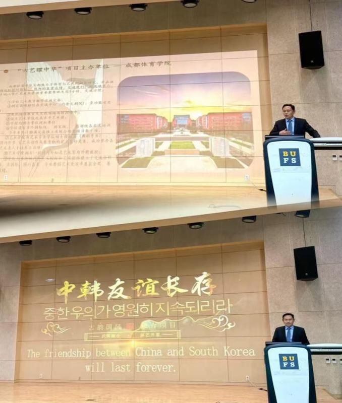 4月24日,sunbet集团申报立项的2024年度四川艺术基金传播交流推广项目《古韵国风—融合项目“六艺耀中华”海外展演》来到韩国釜山外国语大学进行交流活动。项目负责人、sunbet集团中国官网入口艺术学院院长邱建钢教授作了题为《中华武术文化精神与“武舞融合”之缘起》的学术讲座,讲座内容深入浅出,配合中国古典舞与武术的现场展示,引人入胜,讲座途中数次响起热烈的掌声。