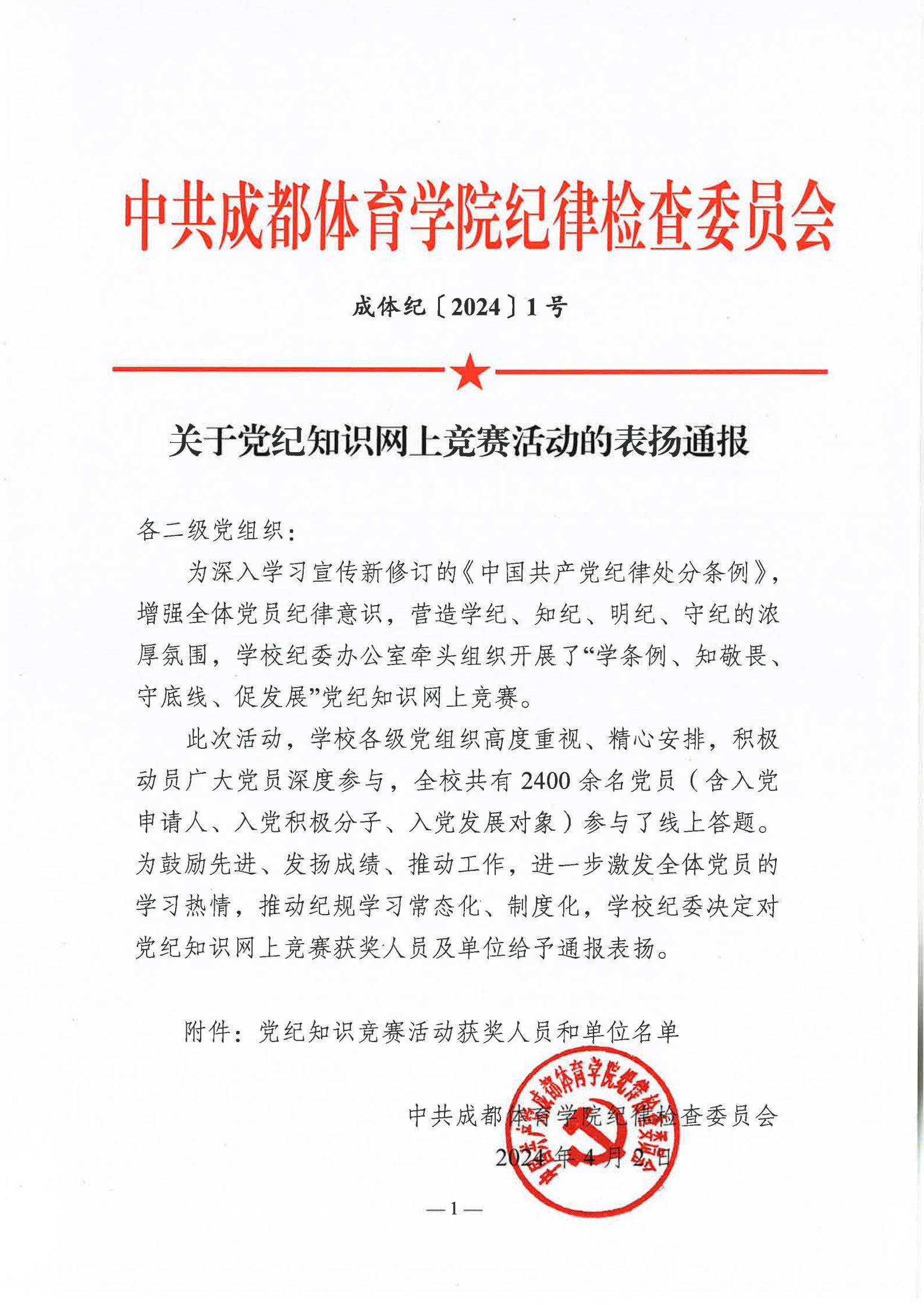 关于党纪知识网上竞赛活动的表扬通报
