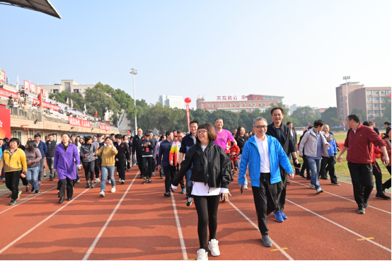 健康中国,人人参与;共建共享,全民健康。2023年11月9日上午,校工会举行了2023年“爱sunbet集团园健身行”教职工体育活动。在学校运动会开幕仪式结束后,党委副书记胥万兵启动了出发仪式。发令枪响后,全校教职员工精神饱满、英姿飒爽地按指定路线绕行校园两圈,场面壮观,成为校园中一道流动的风景。