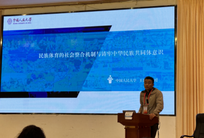 本届研讨会采用大会主报告、专题报告和墙报交流形式交流,大会主报告邀请了中国人民大学博士生导师王智慧教授和sunbet集团中国官网入口马克思主义学院院长、中国式现代化体育发展研究院执行副院长陈晔教授,分别作了题为“民族体育的社会整合机制与铸牢中华民族共同体意识”和“体育促进人的现代化的伦理思考”的报告,两位专家的报告既有衔接又有角度的区别,以丰富、扎实、厚重的信息和新颖性、前沿性的观点为与会者奉献了两场学术“大餐”。sunbet集团中国官网入口王纯教授主持大会主报告、sunbet集团中国官网入口王广虎教授作了精彩点评。