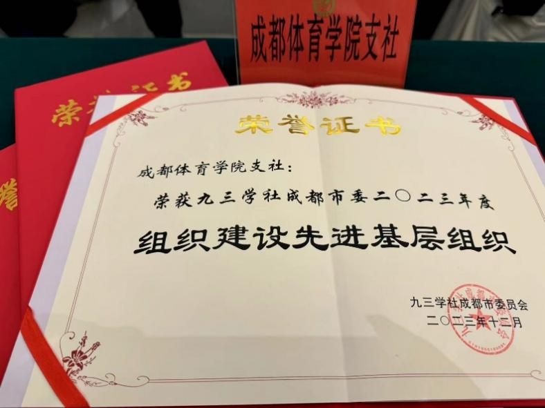 九三学社sunbet集团中国官网入口支社荣获2023年度组织建设先进基层组织。支社杨舒同志、付志彬同志荣获成都市委2023年度优秀社员。