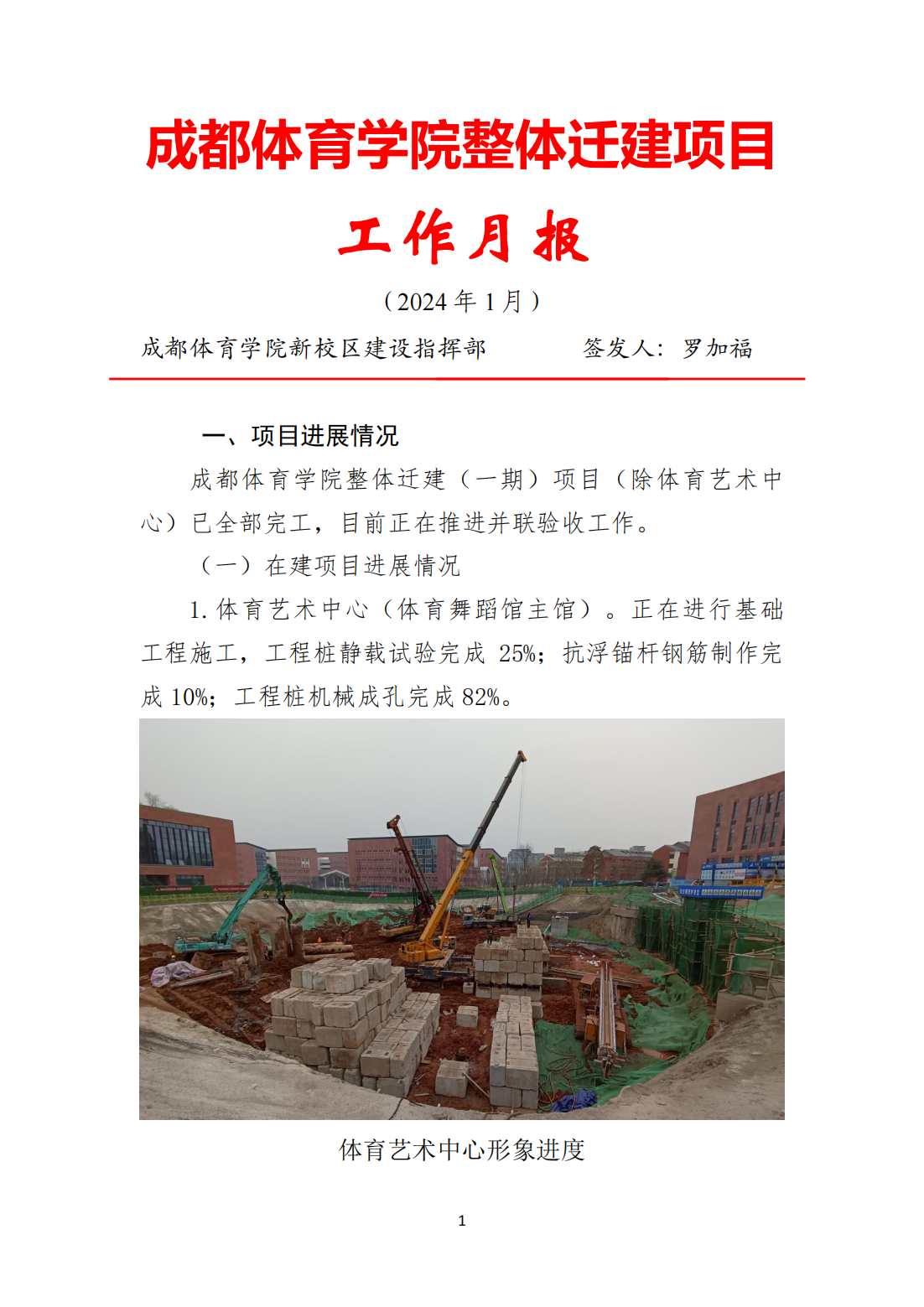 sunbet集团中国官网入口整体迁建项目工作月报(2024年1月)