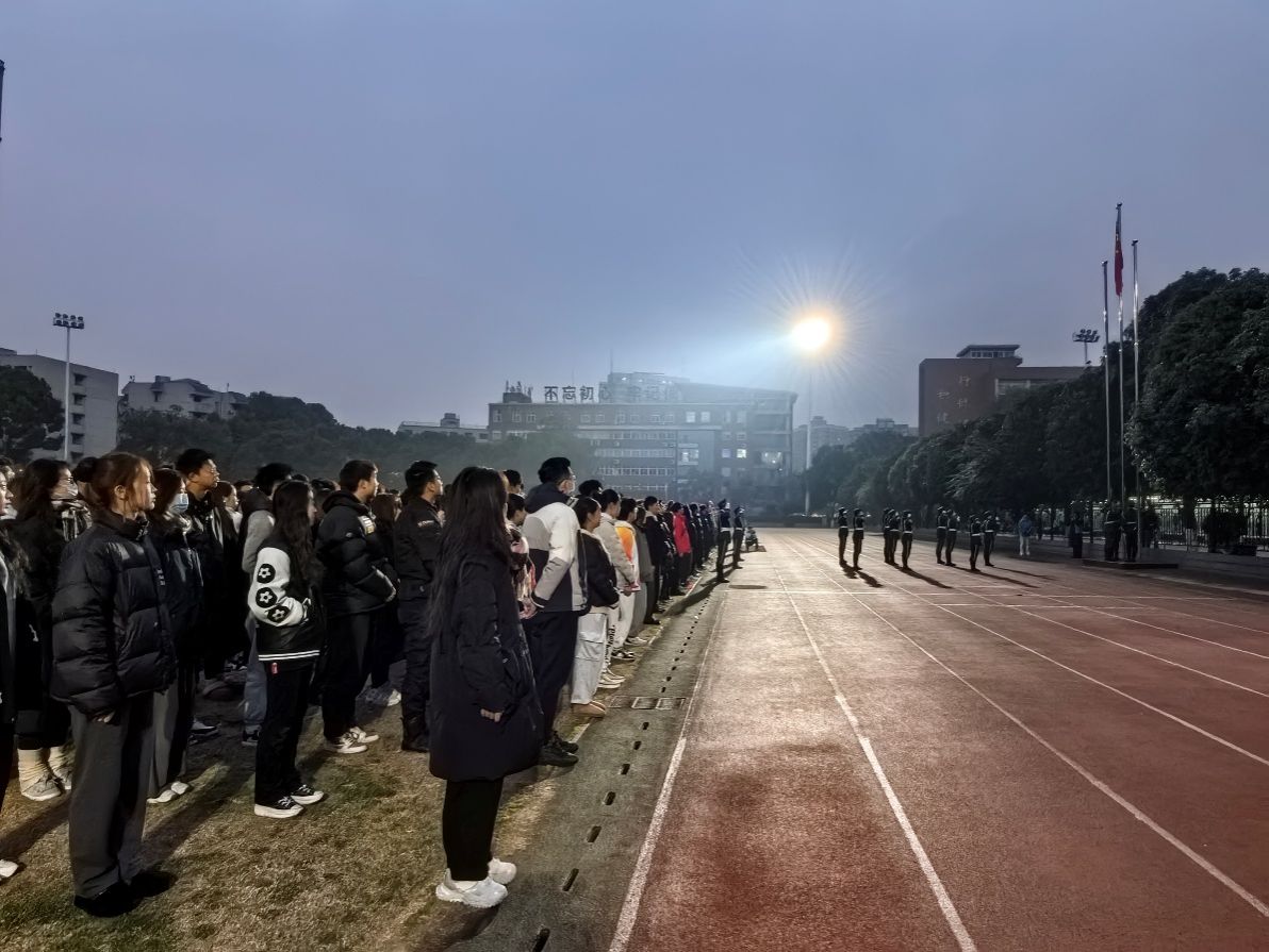 7点20分,升旗仪式正式开始。校国旗护卫队队员迈着坚定的步伐护送鲜艳的五星红旗走向升旗台。在慷慨激昂的国歌中,鲜艳的五星红旗冉冉升起,迎风飘扬。盎然晨晖下,飘扬红旗映东方晨曦;鲜艳国旗下,坚定目光展如火青春。全体师生庄严肃立,向国旗行注目礼。