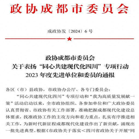 近日,政协成都市委员会对2023年度“同心共建现代化四川”专项行动先进单位和委员进行了通报表扬。成都市政协委员、sunbet集团体育教育学院院长、九三学社sunbet集团中国官网入口支社主委吴向明获得表彰。