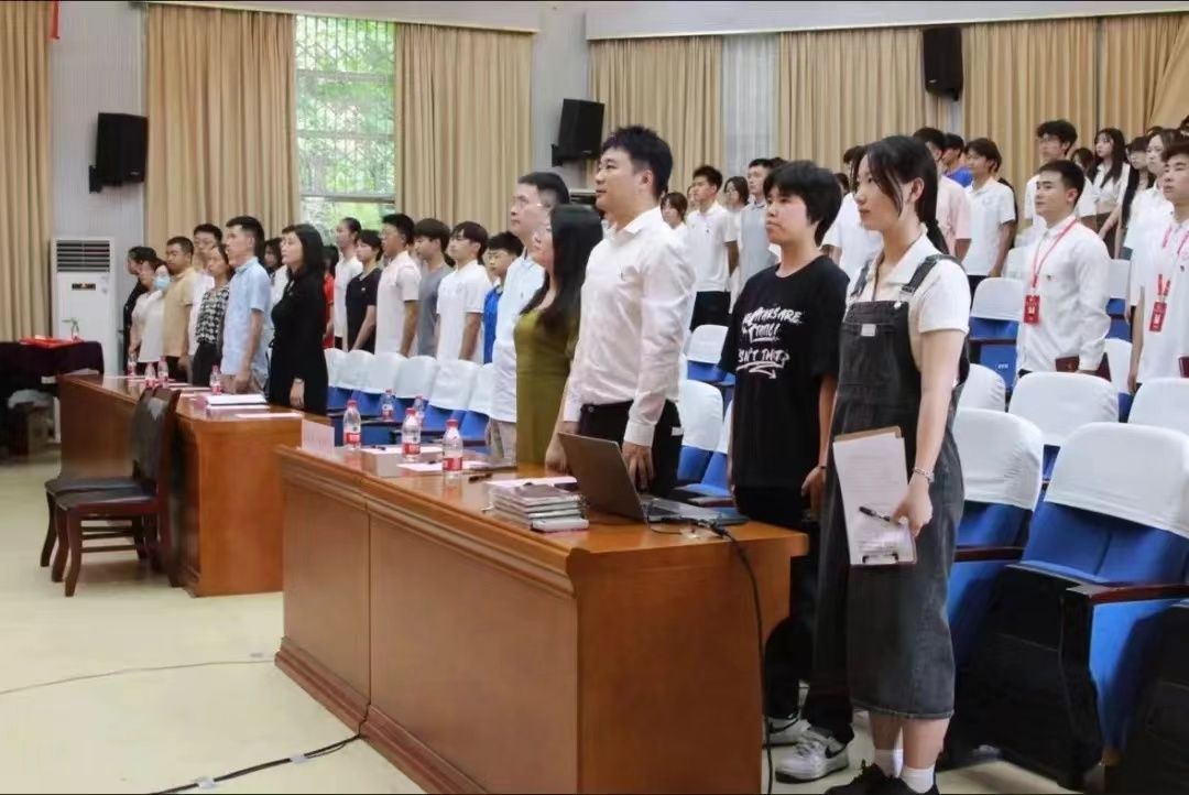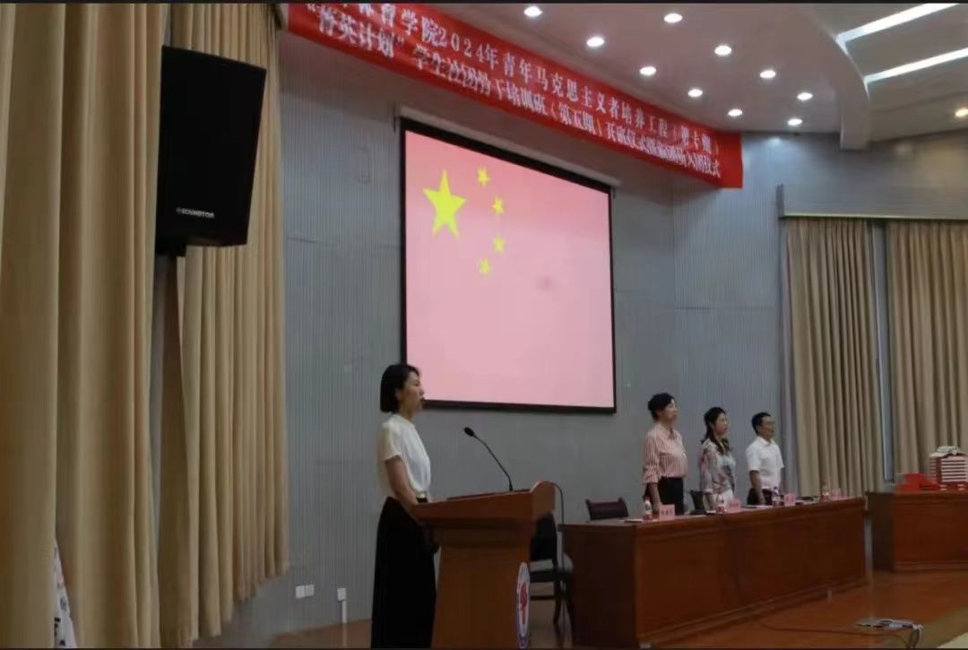 5月22日,sunbet集团中国官网入口第十期青年马克思主义者培养工程、第五期“菁英计划”学生社团骨干培训班开班仪式暨2024年新团员入团仪式在阶梯教室顺利举行。学校党委常委、副校长邬红丽为参训第十期青马工程学员讲主题团课。学工部、团委负责同志,各学院团总支书记参加开班仪式。