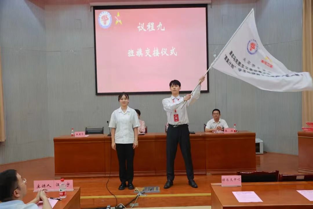 第九期青马学员胡麟向第十期青马学员陈纪儒交接班旗