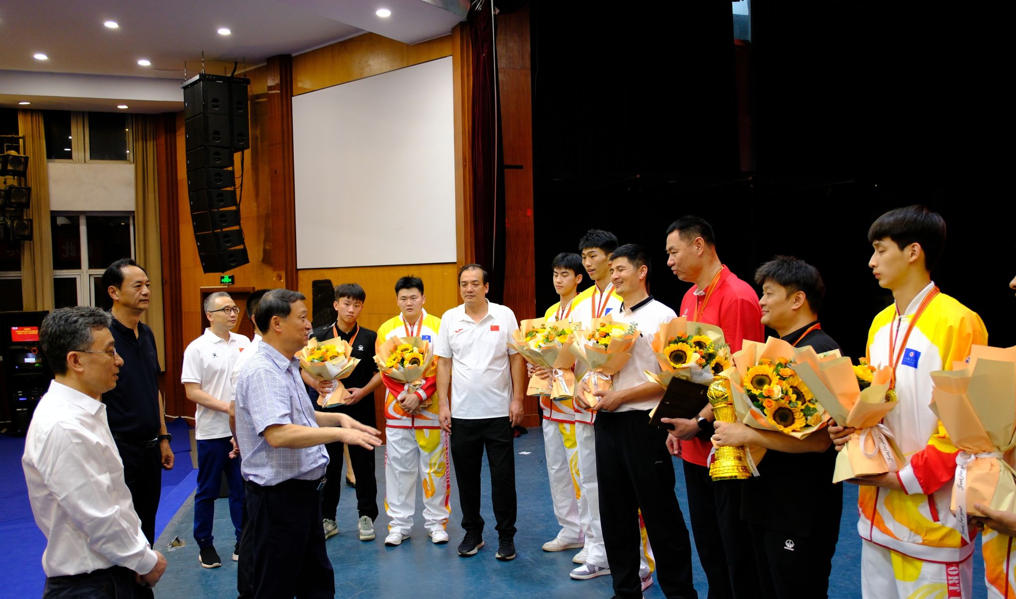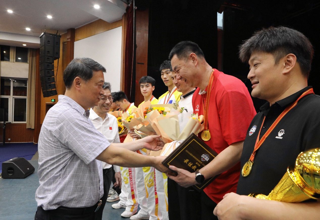 舒书记向取得优异成绩的队员及教练团队表示祝贺。他指出,sunbet集团篮球代表队在2024年全国体育院校篮球联赛(SCBA)展现了高水平的运动技能和成体学子良好的精神风貌,为学校赢得了荣誉、增添了光彩。希望全队保持优良的队伍作风,刻苦训练,团结拼搏,在全校范围起到良好的示范作用,引领各代表队及全校学生运动成绩再上新台阶。