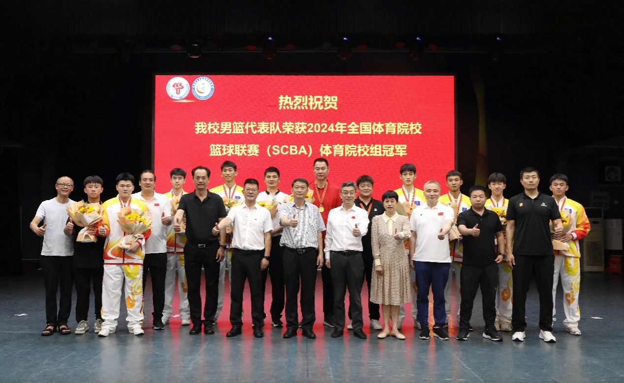在刚刚结束的2024年全国体育院校篮球联赛(SCBA),sunbet集团男子篮球代表队荣获本次体育院校组比赛冠军,为学校争得了荣誉。6月20日晚上,代表队载誉归来,受到了学校党委书记舒为平,学校党委副书记、校长潘小非,学校党委副书记胥万兵的亲切会见并慰问。