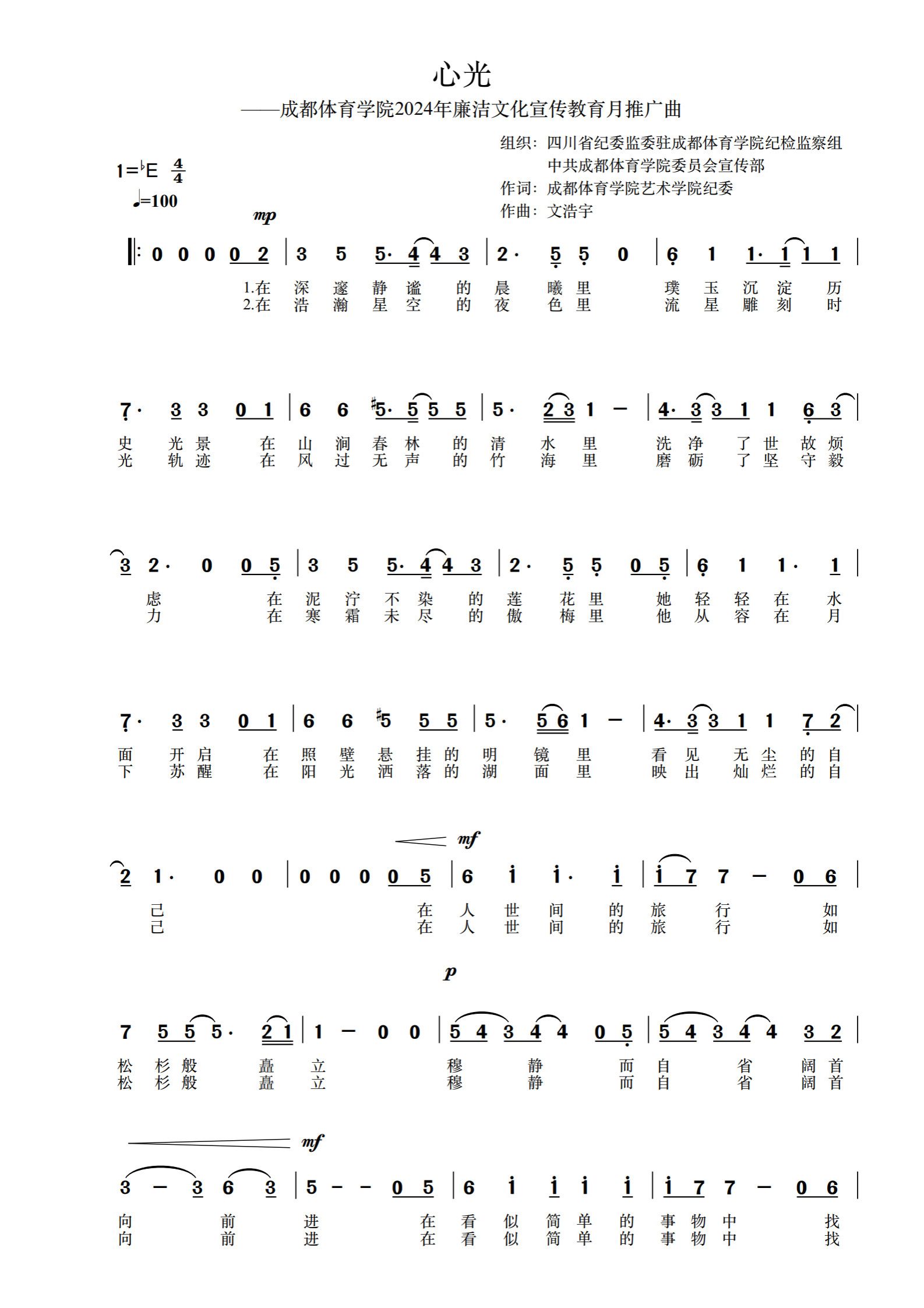 sunbet集团中国官网入口2024年廉洁⽂化宣传教育⽉推⼴曲《心光》