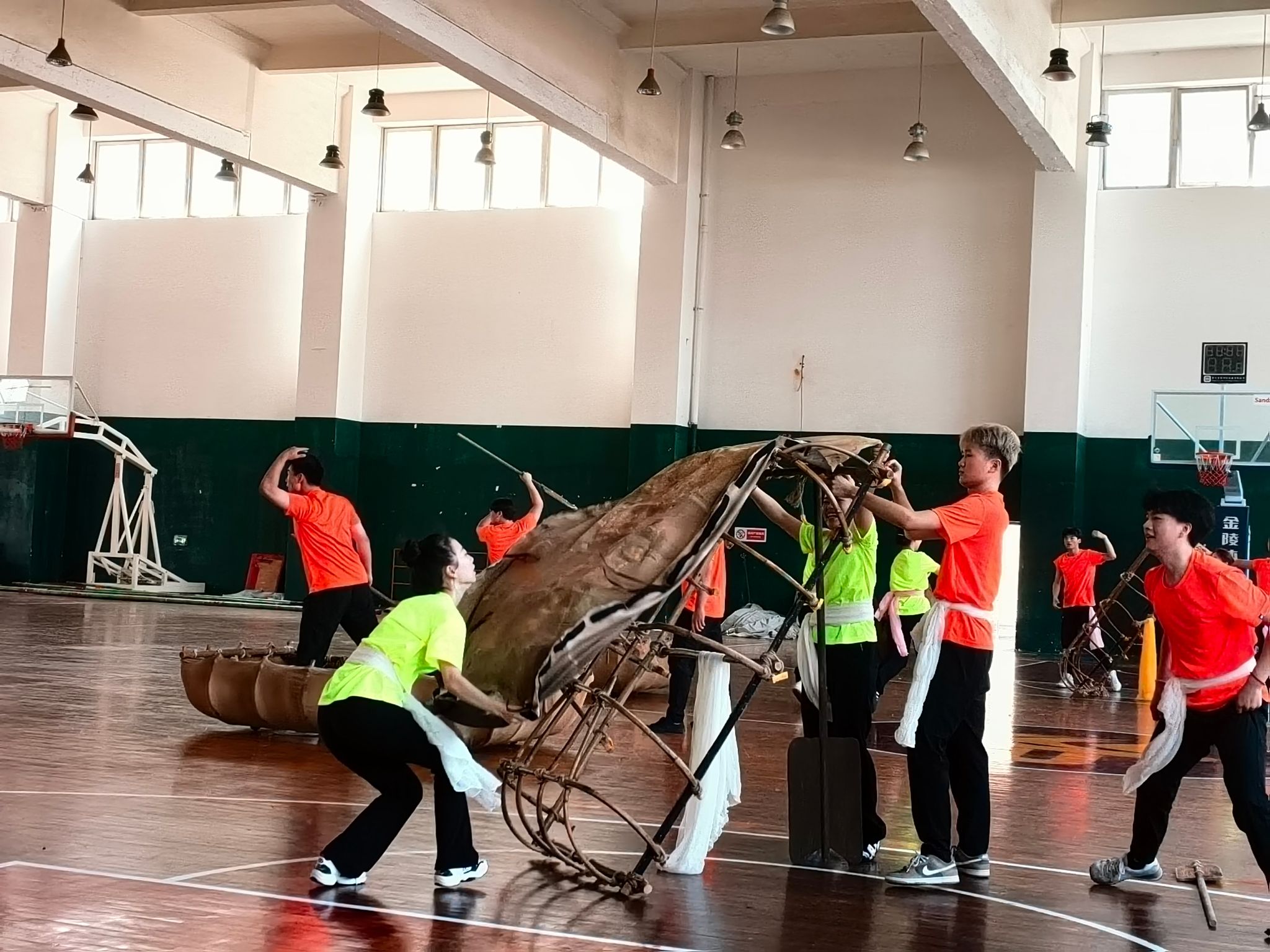 中华人民共和国第十二届少数民族传统体育运动会(以下简称:第十二届全国民族运动会)四川省代表团表演项目于7月18—8月14日组织进行了第二阶段排练工作。8月14日中午,艺术学院领导班子及项目负责人就第十二届全国民族运动会四川省代表团表演项目第二阶段的完成情况在武侯校区球类馆进行检查。