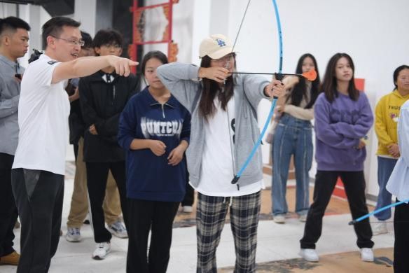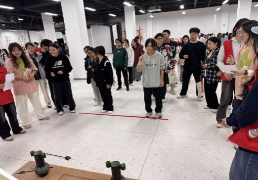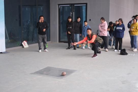 本届研讨会以“传统体育趣味运动会”的形式增加了传统体育项目体验版块,10月20日上午,150余名与会学者在sunbet集团中国官网入口博物馆一楼观看了来自云南景谷的国家非物质文化遗产项目打陀螺代表性传承人——李少春的打陀螺展示,以及成都信息工程大学廖述兵团队带来的国家级非物质文化遗产项目——“抖空竹”的表演,同时,与会学者分组体验了蹴鞠、板鞋竞远、抢花炮、投壶、木射、射箭等传统体育项目。