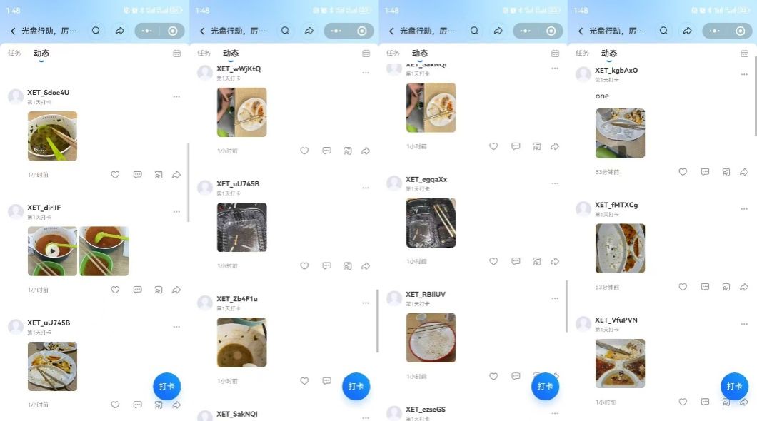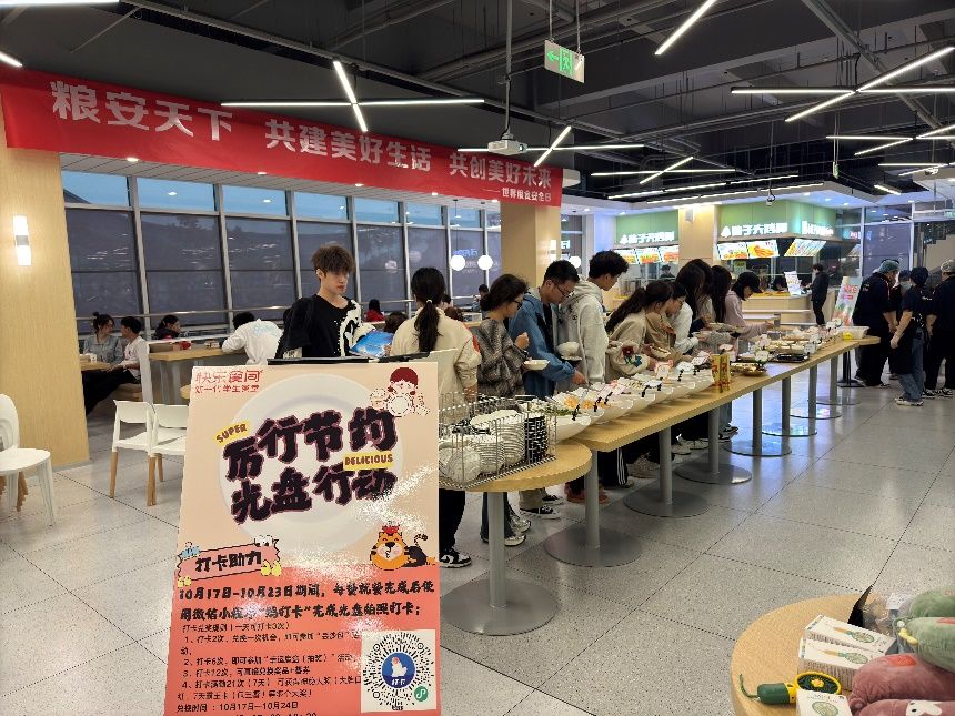 营造节粮氛围,倡导光盘行动。各食堂化身育人阵地,充分利用餐桌面、宣传栏等载体,张贴横幅、海报,并摆放宣传展板,以多种形式加大反食品浪费的宣传力度,营造节约粮食的良好氛围;同时,开展“光盘赢好礼”和“美食品鉴会”等活动,师生参与光盘打卡,即可赢取各食堂精心准备的礼品。