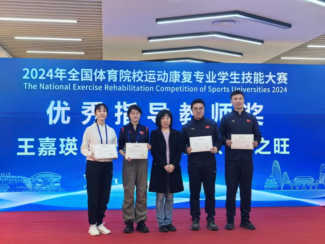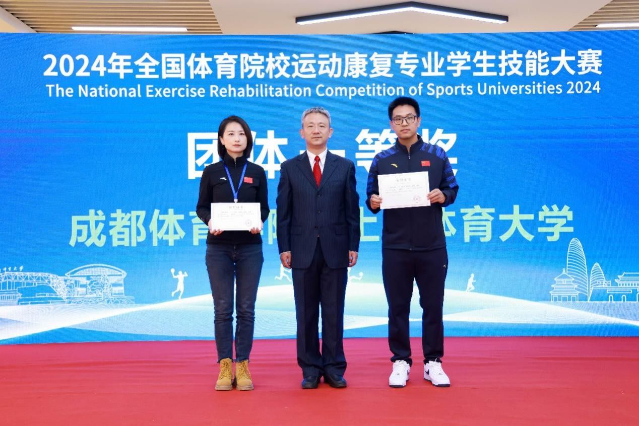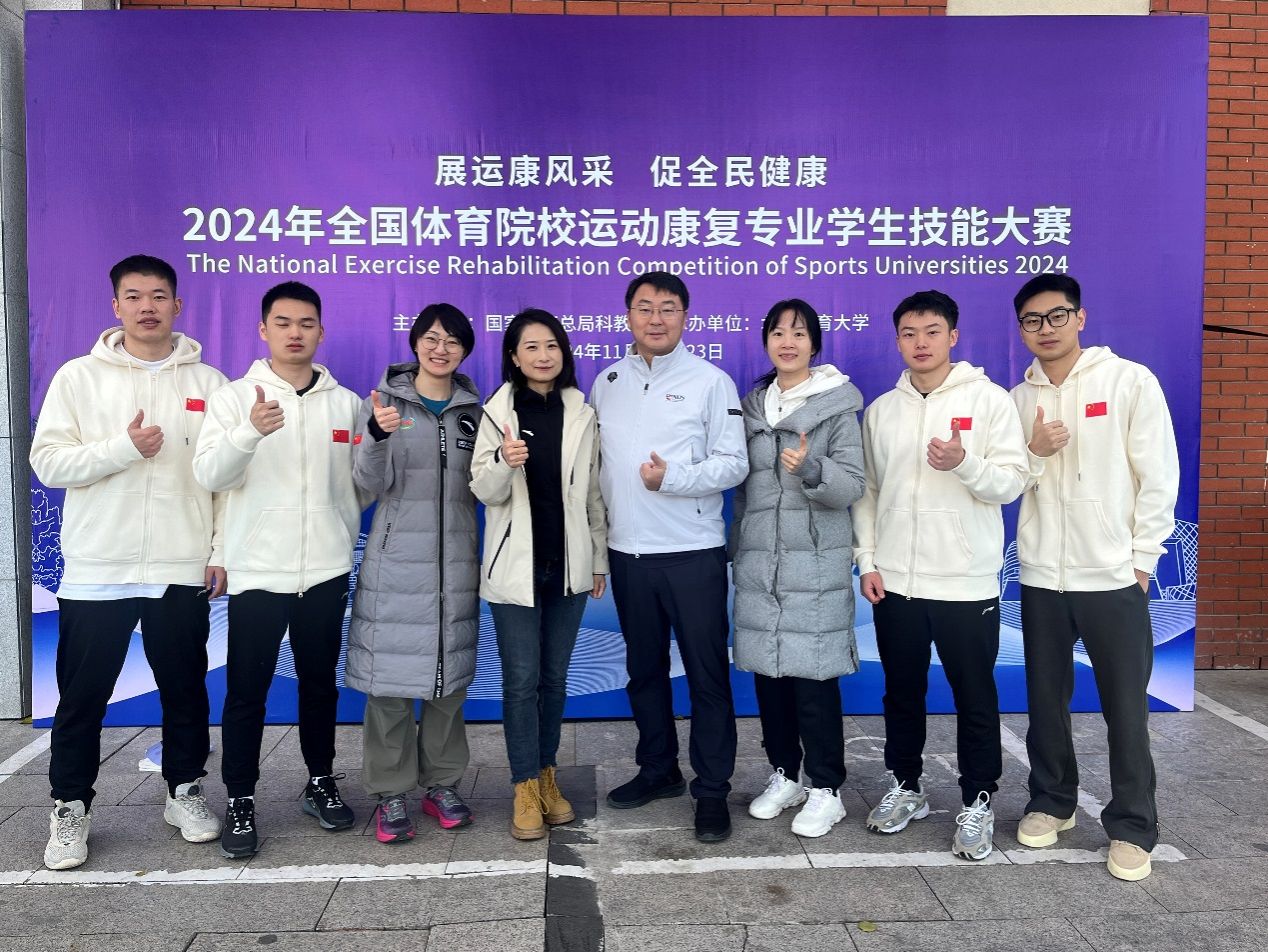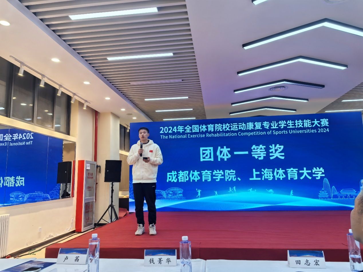 为贯彻落实党的二十大精神,加快推进体育强国、健康中国建设,提升全国体育院校运动康复专业人才培养质量,由体育总局科教司举办,北京体育大学运动医学与康复学院承办的“首届运动康复专业学生技能大赛”于2024年11月21日至23日在北京体育大学隆重举行。sunbet集团代表团在与来自全国14所开设运动康复专业的体育院校代表团的激烈角逐中以总分排名第一的佳绩荣获本次大赛“团体一等奖”;同时还以单项组最高成绩获得了“肌骨运动康复”和“运动损伤防护”两个单项奖;张春龙同学作为一等奖团队学生代表发言,并与各大院校学生分享竞赛心得;此外,运动康复教研室的张纯、王嘉瑛两位老师荣获“优秀指导老师奖”。
