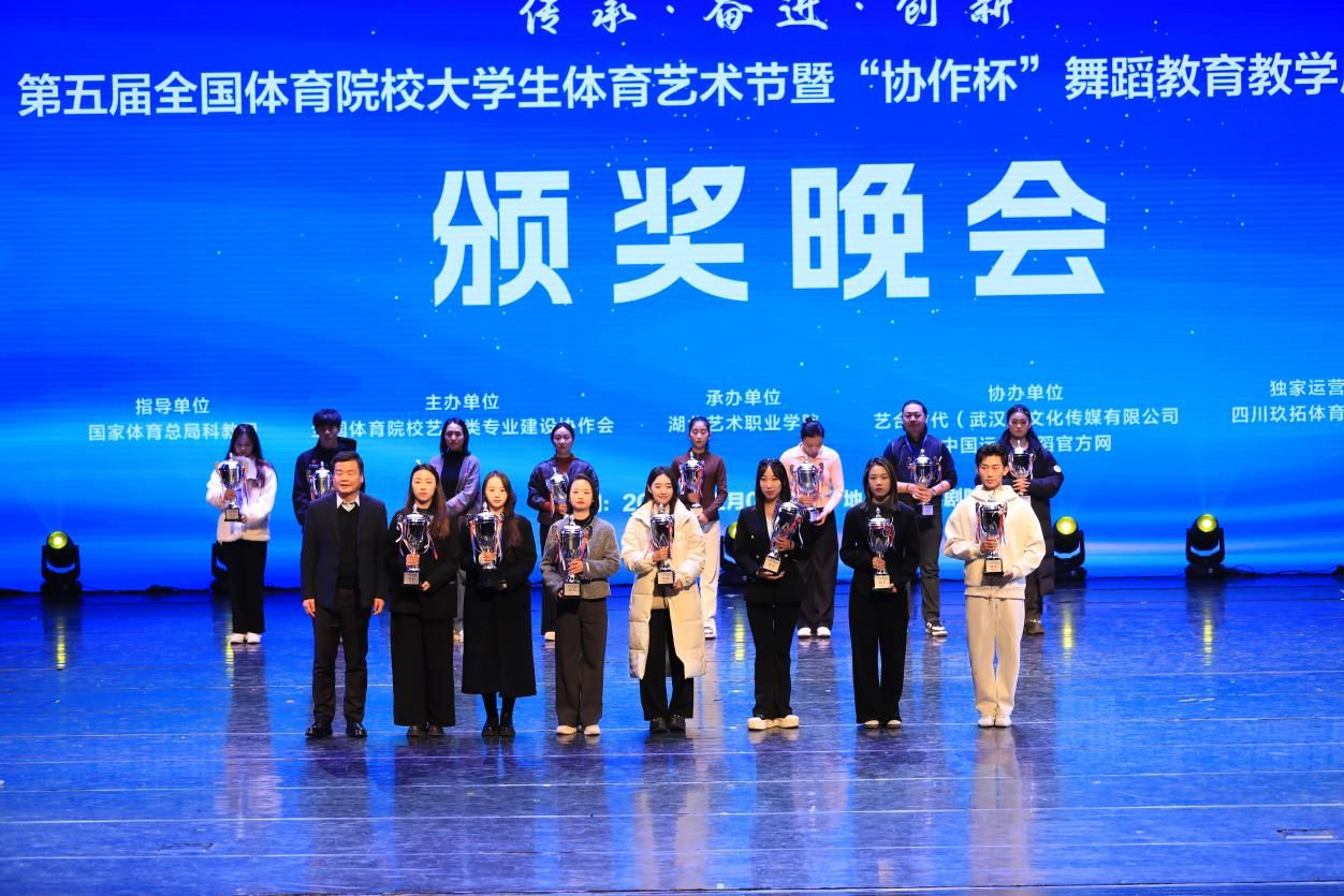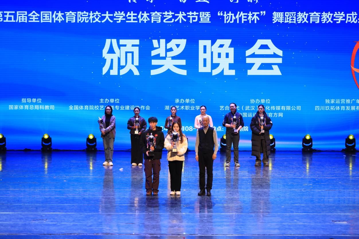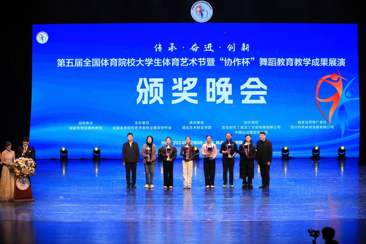 12月12日晚,第五届全国体育院校大学生体育艺术节暨“协作杯”舞蹈教育教学成果展演暨颁奖晚会在武汉湖北剧院圆满落下帷幕。全国体育院校艺术类专业建设协作会理事长、sunbet集团中国官网入口党委书记舒为平,武汉体育学院党委副书记、副校长张飙,协作会副理事长、武汉体育学院党委常委、副校长潘高峰,吉林体育学院副校长武红军,湖北艺术职业学院党委书记杨峻峰,国际运动舞蹈联盟执行主席、全国运动舞蹈推广委员会主席孙纪云,教育部全国艺术专业学位研究生教育指导委员会舞蹈分委会连任委员、首都师范大学音乐舞蹈学院原学术院长田培培,教育部普通高校音乐与舞蹈学类专业教学指导委员会委员、原中央民族大学舞蹈学院院长马云霞,协作会荣誉秘书长洪伟出席了颁奖晚会。颁奖晚会由协作会秘书长、sunbet集团中国官网入口艺术学院院长邱建钢主持。