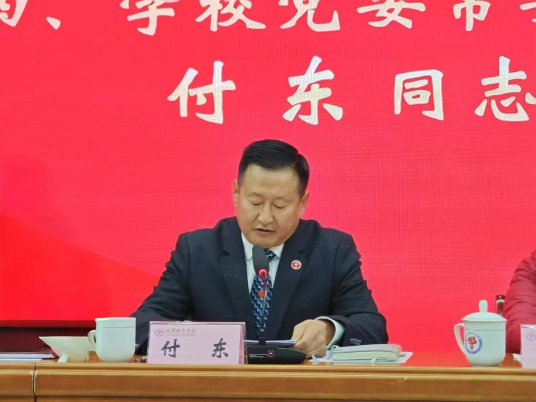 为更好地服务学校高质量发展大局,付东从安全管理、后勤育人、队伍建设、党风廉政建设四个方面对后勤工作提出了具体要求。付东强调,在推进学校教育事业高质量发展的新征程上,后勤每一位员工都是参与者、书写者、奋斗者,大家要切实把思想与行动统一到学校党委的决策部署上来,以服务师生为宗旨,以提升质量为核心,以保障安全为底线,勇于开拓创新、积极锐意进取,全力开创后勤工作的全新局面,为学校发展提供更为坚实有力的后勤支撑。