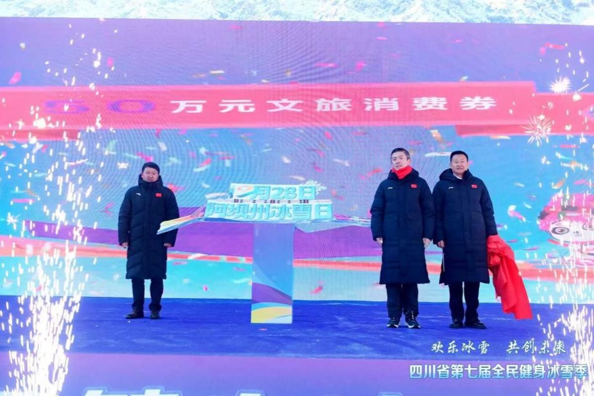 12月27日,第十一届全国大众冰雪季(四川分会场)暨四川省第七届全民健身冰雪季活动在阿坝州汶川县羌人谷滑雪场拉开帷幕。学校党委常委、副校长付东同志受邀参加此次开幕式活动,并为“阿坝州冰雪日”揭幕。