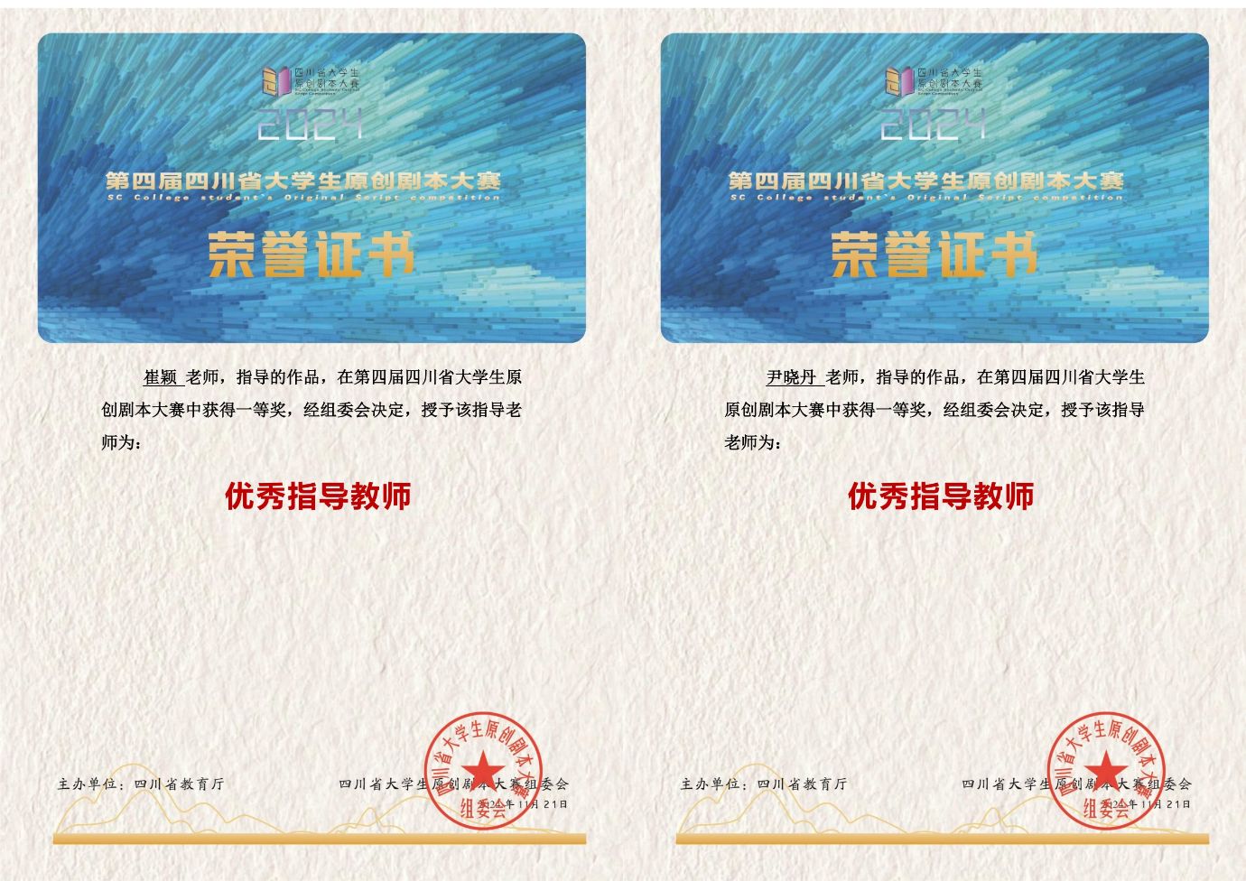 近日,由四川省教育厅主办、四川师范大学承办,四川省作家协会、青神县委宣传部等单位协办的2024年第四届四川省大学生原创剧本大赛落下帷幕,经过激烈的角逐和专业的评审,sunbet集团新闻与传播学院师生表现出色,共获得3个一等奖、8个二等奖以及4个三等奖,崔颖、尹晓丹两位老师获“优秀指导教师”。