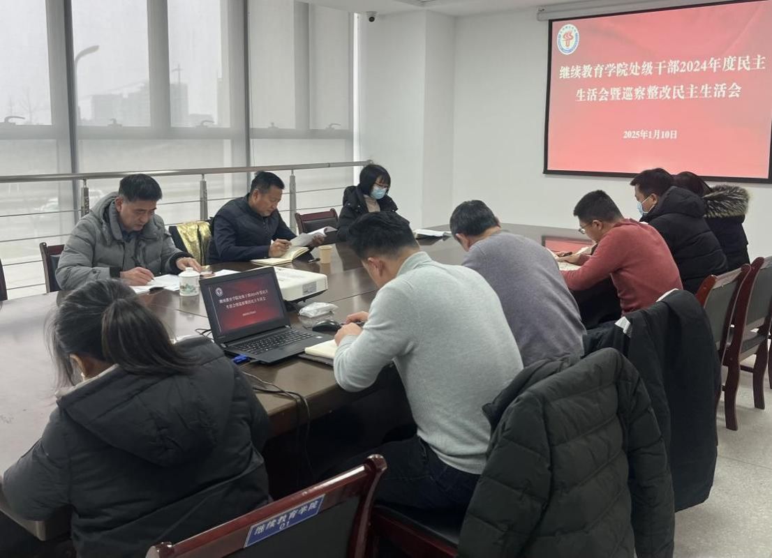 1月10日下午,继续教育学院召开处级干部2024年民主生活会暨巡察整改民主生活会。学校党委常委、副校长付东同志;党委组织部副部长张娟同志出席,继教院全体教职工参加,会议由直属党支部书记杨冰主持。
