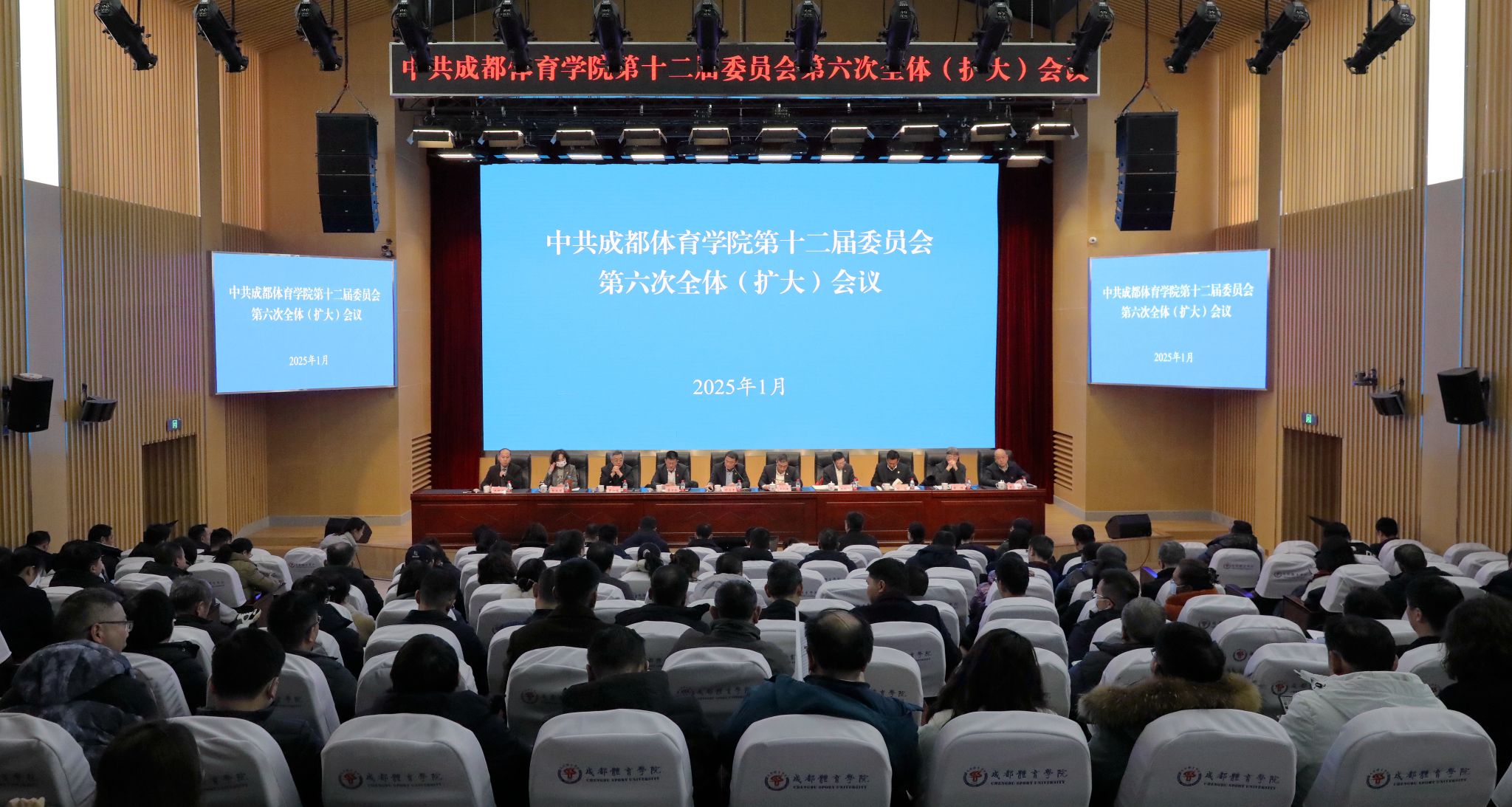2025年1月13日下午,中共sunbet集团中国官网入口第十二届委员会在新校区行健楼2楼同传室召开第六次全体(扩大)会议。党委书记舒为平代表党委常委会作了2024年工作报告,党委副书记、校长潘小非主持会议。