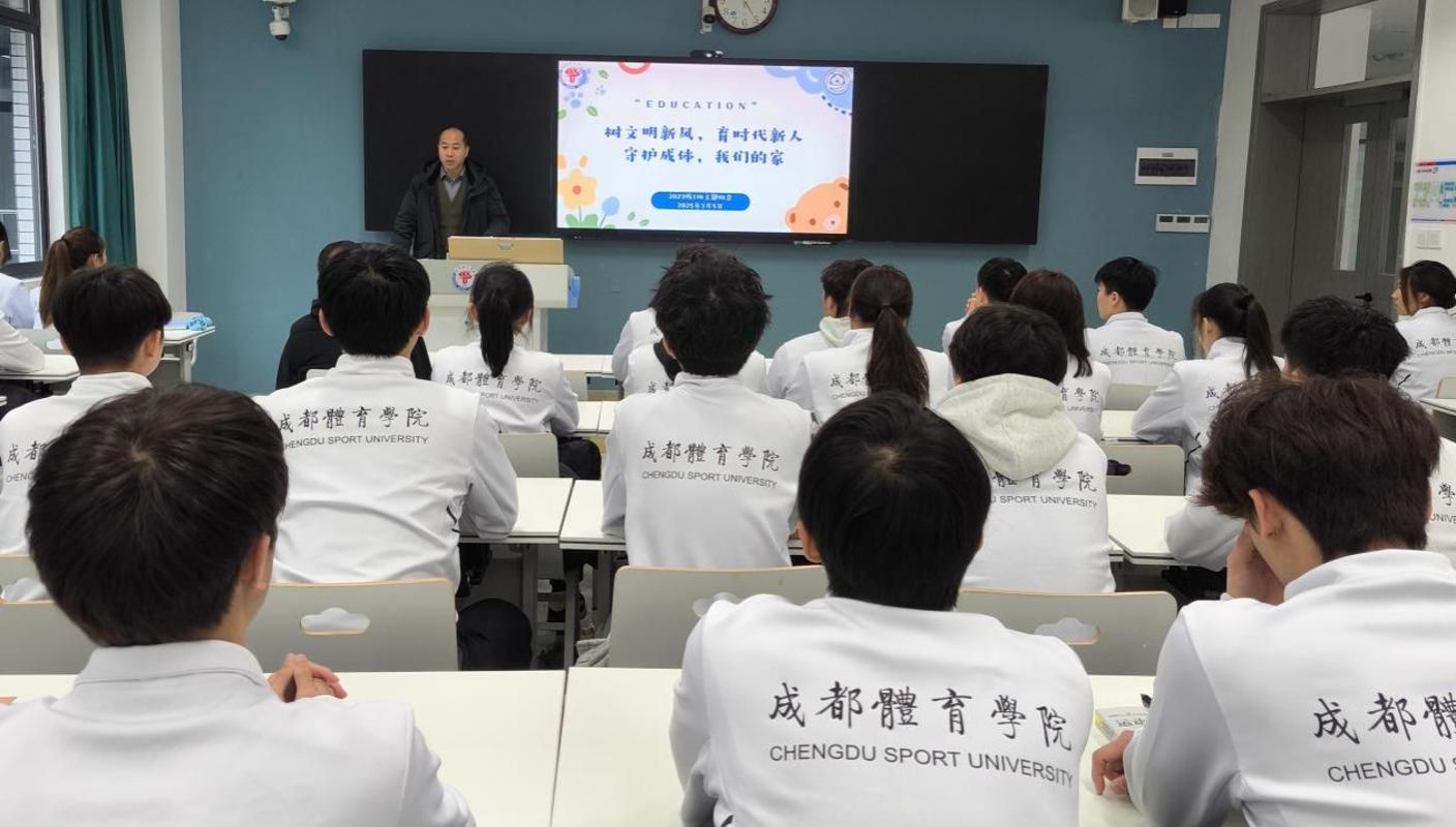 “细微之处见风范,毫厘之间定乾坤。”3月5日,足球运动学院2023级1班召开《树文明新风,育时代新人 ——守护成体,我们的家》主题班会。学校党委常委、副校长王明建,学院党委书记何培林,学管办乔紫微及全班同学参加。