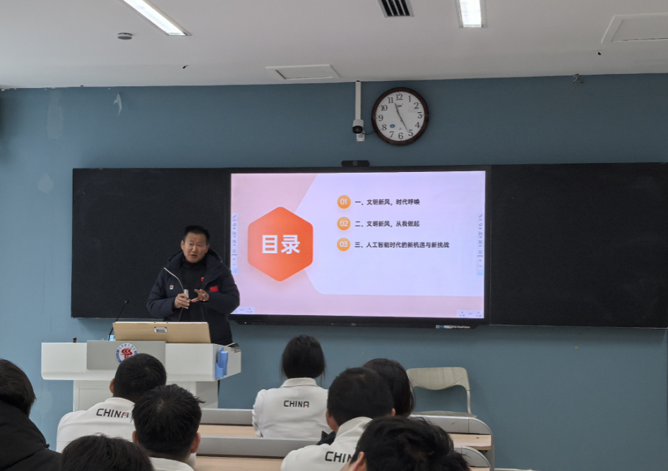 2025年3月6日,学校党委常委、副校长付东走进联系班级——运动休闲学院2023级休闲体育1班,参加“树文明新风,育时代新人”养成教育主题班会,与同学们亲切交流,共话成长。