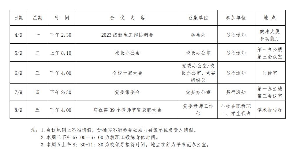 第五周会议安排