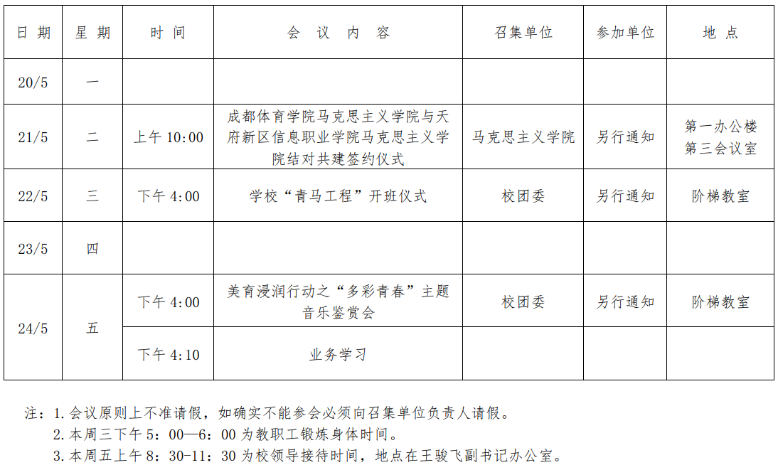 第五周会议安排