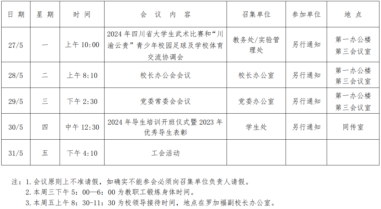 第五周会议安排