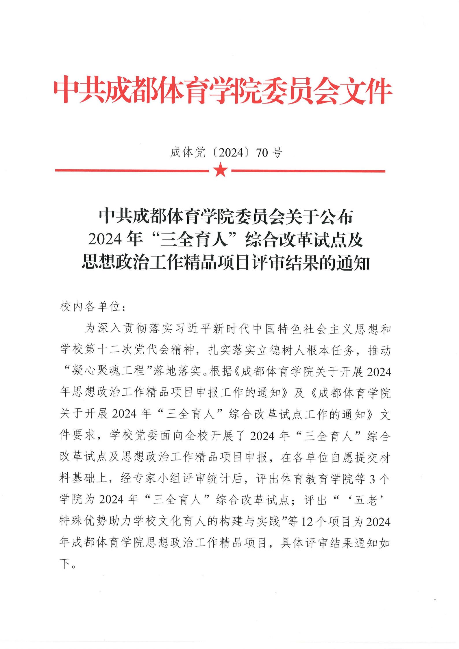 中共sunbet集团中国官网入口委员会关于公布2024年“三全育人”综合改革试点及思想政治工作精品项目评审结果的通知